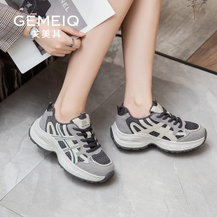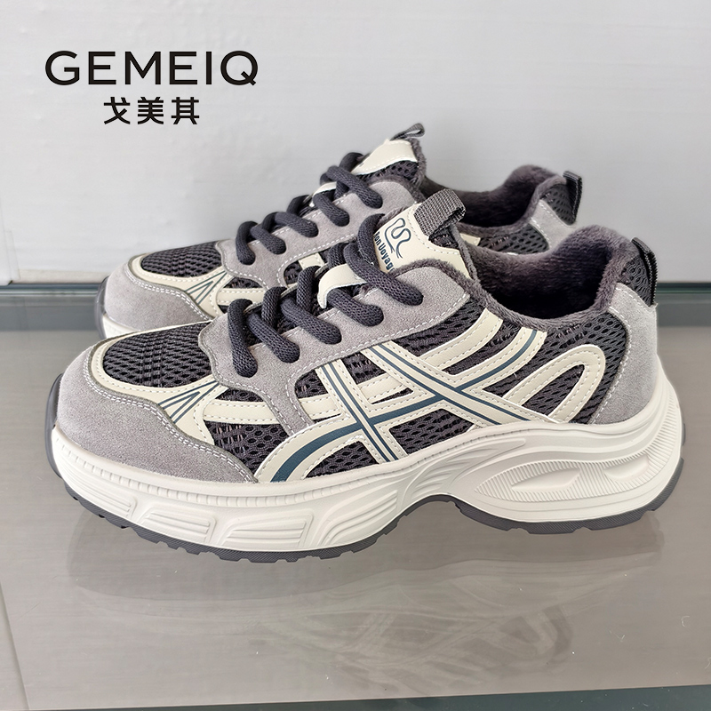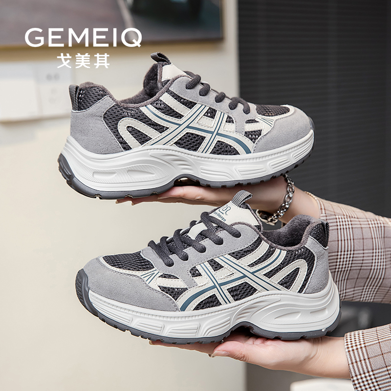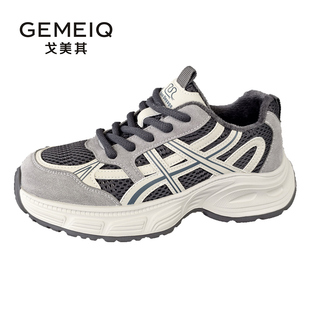 女款 厚底加绒增高休闲运动鞋 2025爆款 新款 秋冬季 达芙妮灰色老爹鞋