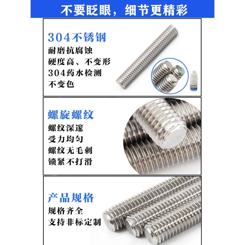 304 201不锈钢牙条丝杆通丝全螺纹夹紧穿墙螺杆M4M5M6M8M10M12