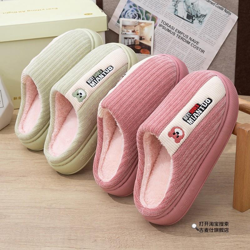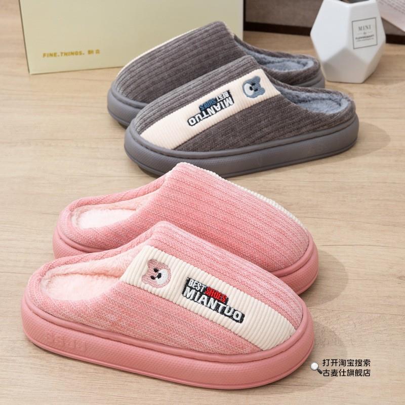 男 居家室内加绒加厚防滑耐磨保暖情侣毛毛鞋 棉拖鞋 女2025年秋冬季