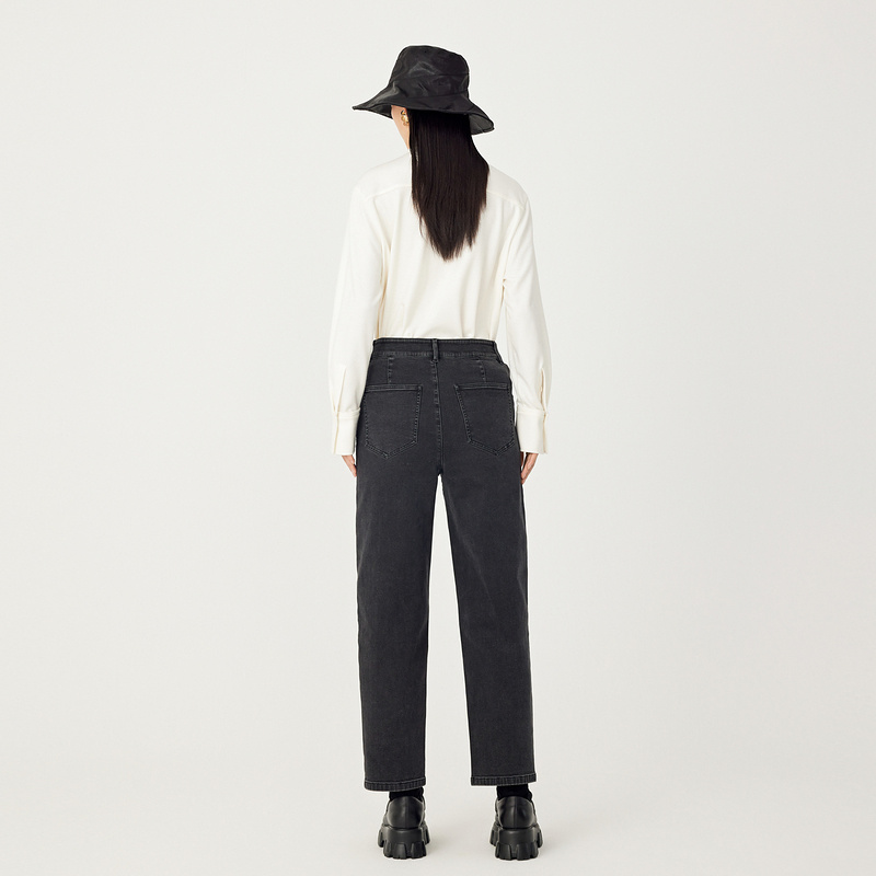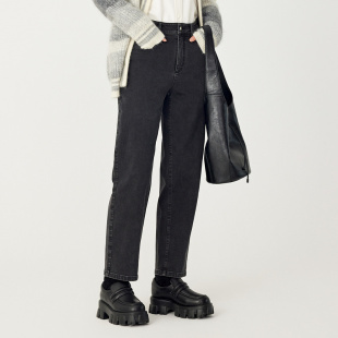 茧型宽松磨毛洗水纹理牛仔裤 AUM噢姆冬季 黑色 会员价1008元