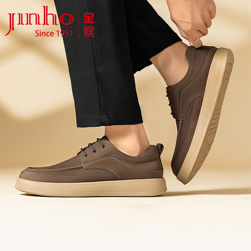 宽脚大头内增高结婚新郎休闲鞋 真皮商务正装 棕色 皮鞋 花花公子男士