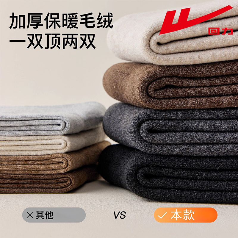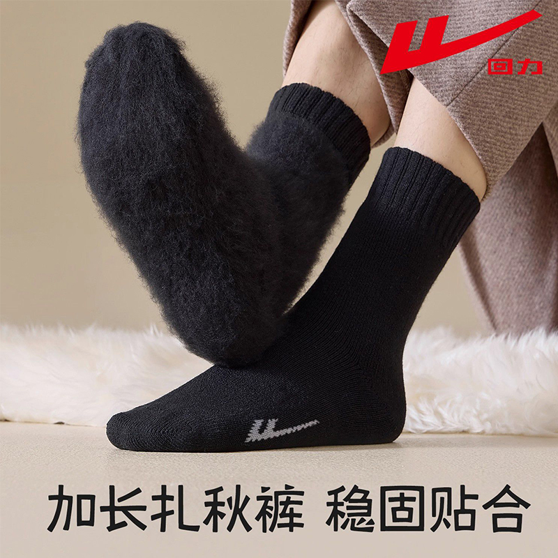 回力纯色新疆棉袜子男款 春秋吸汗防臭中筒袜冬加厚长筒袜100%正品