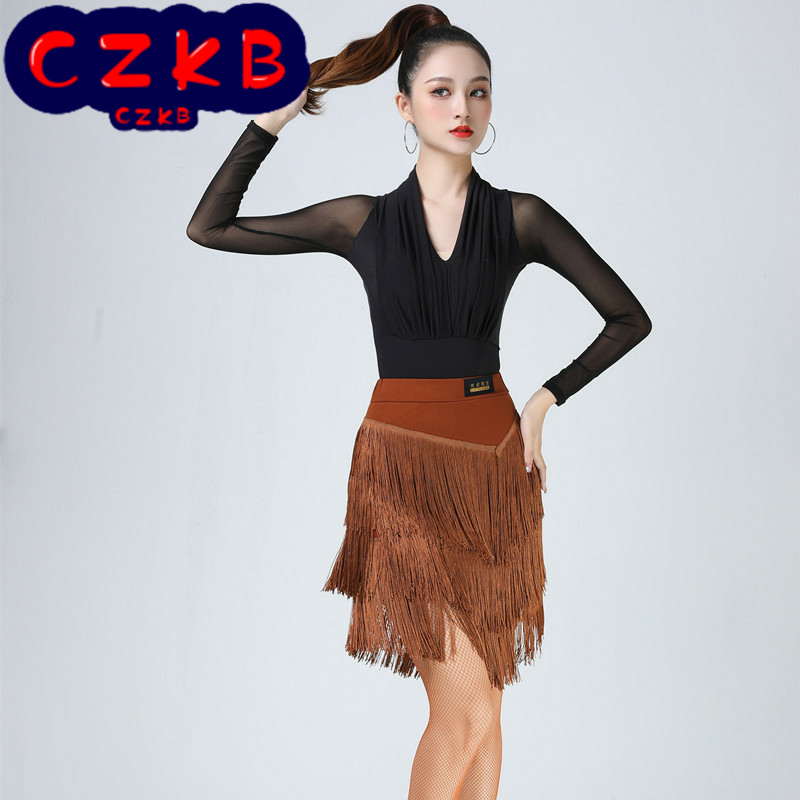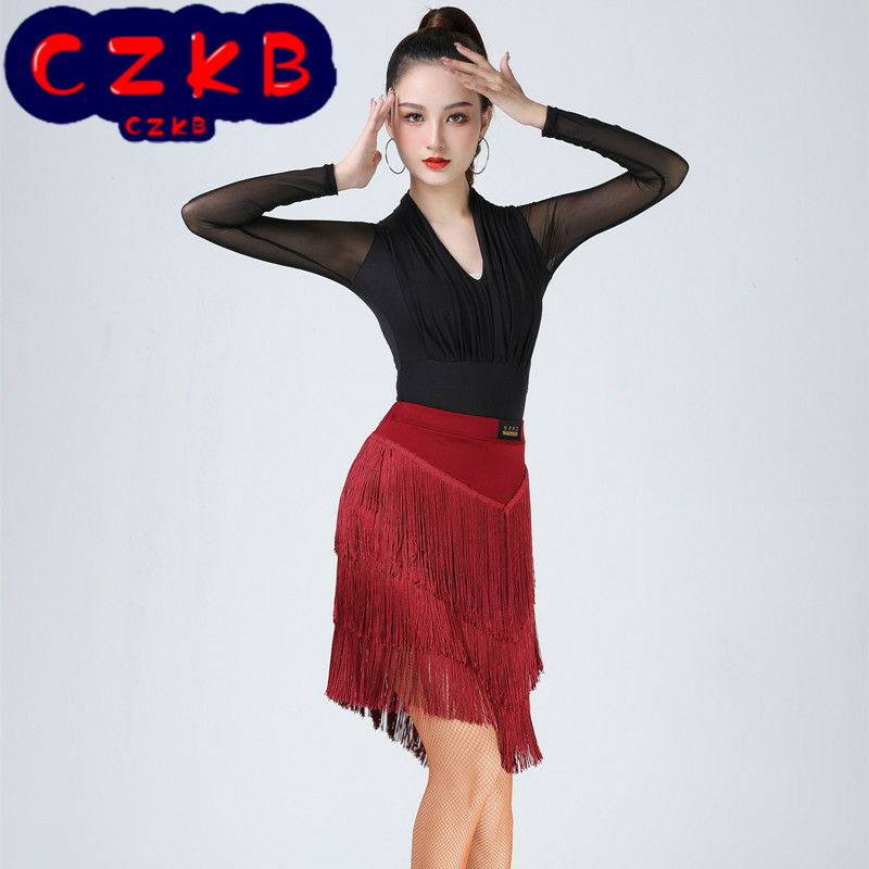 女成年人半身裙流苏裙下装 练功服装 舞蹈比赛演出服 拉丁舞套装 新款
