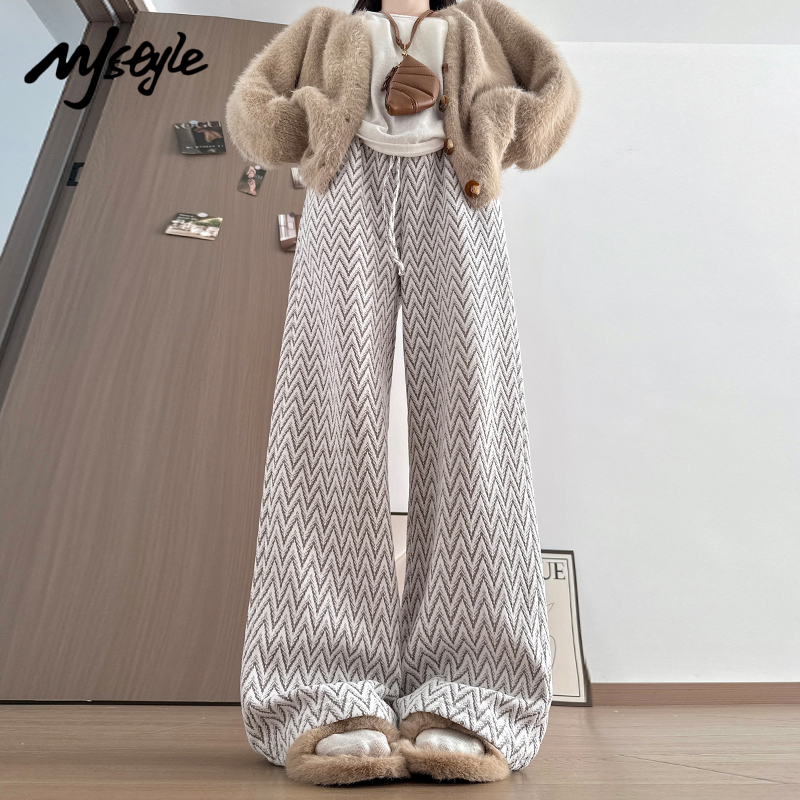 高腰休闲宽松加厚裤 女2025秋冬新款 子 STYLE人字纹雪尼尔阔腿裤