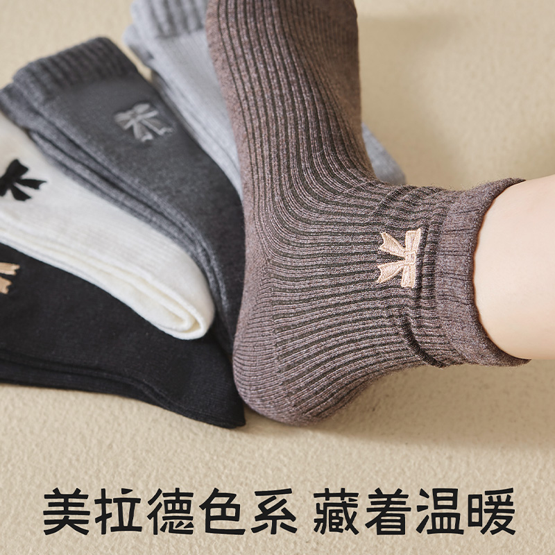 秋冬款 袜子女百搭秋冬棕色系中筒袜堆堆蝴蝶甜美系中筒袜配小皮鞋