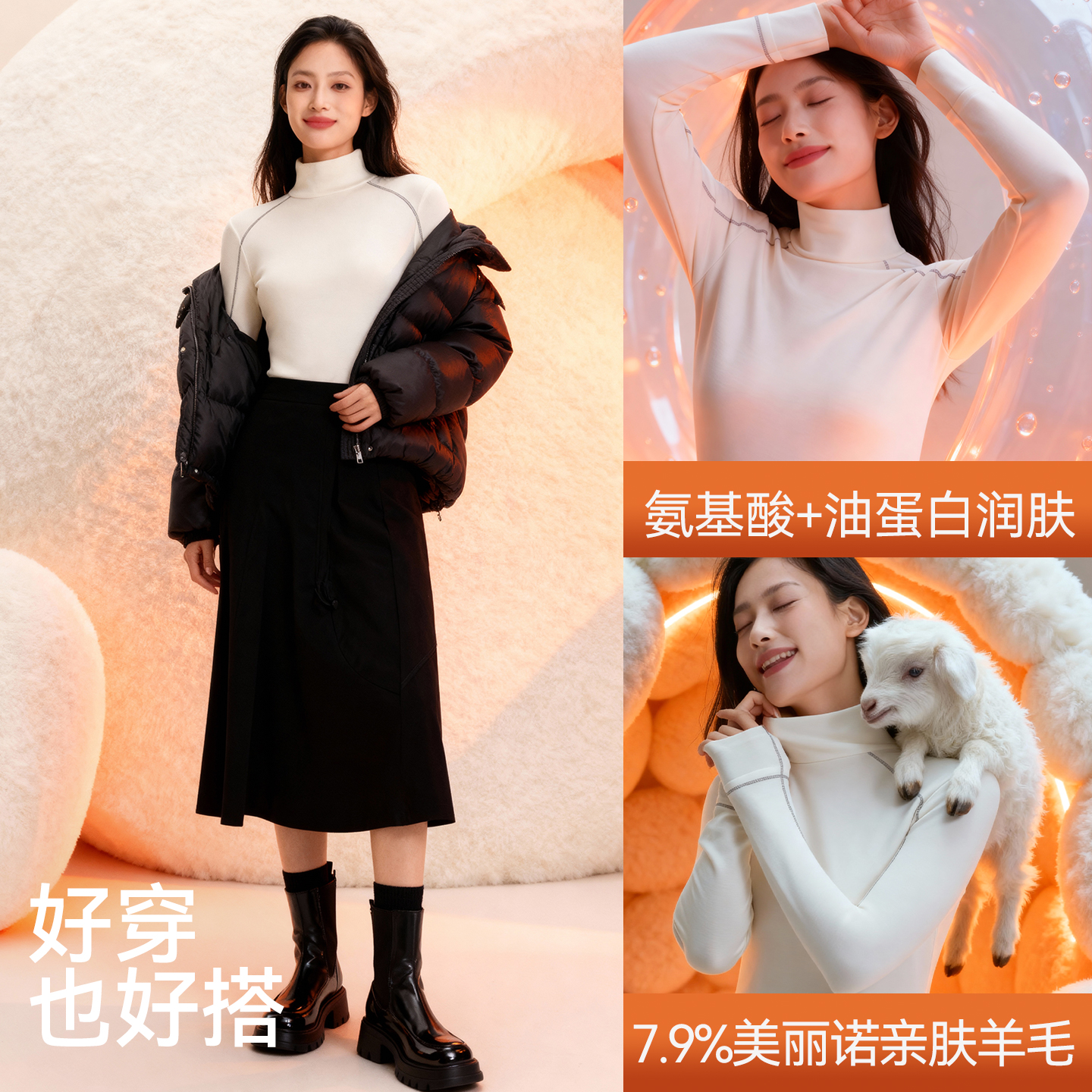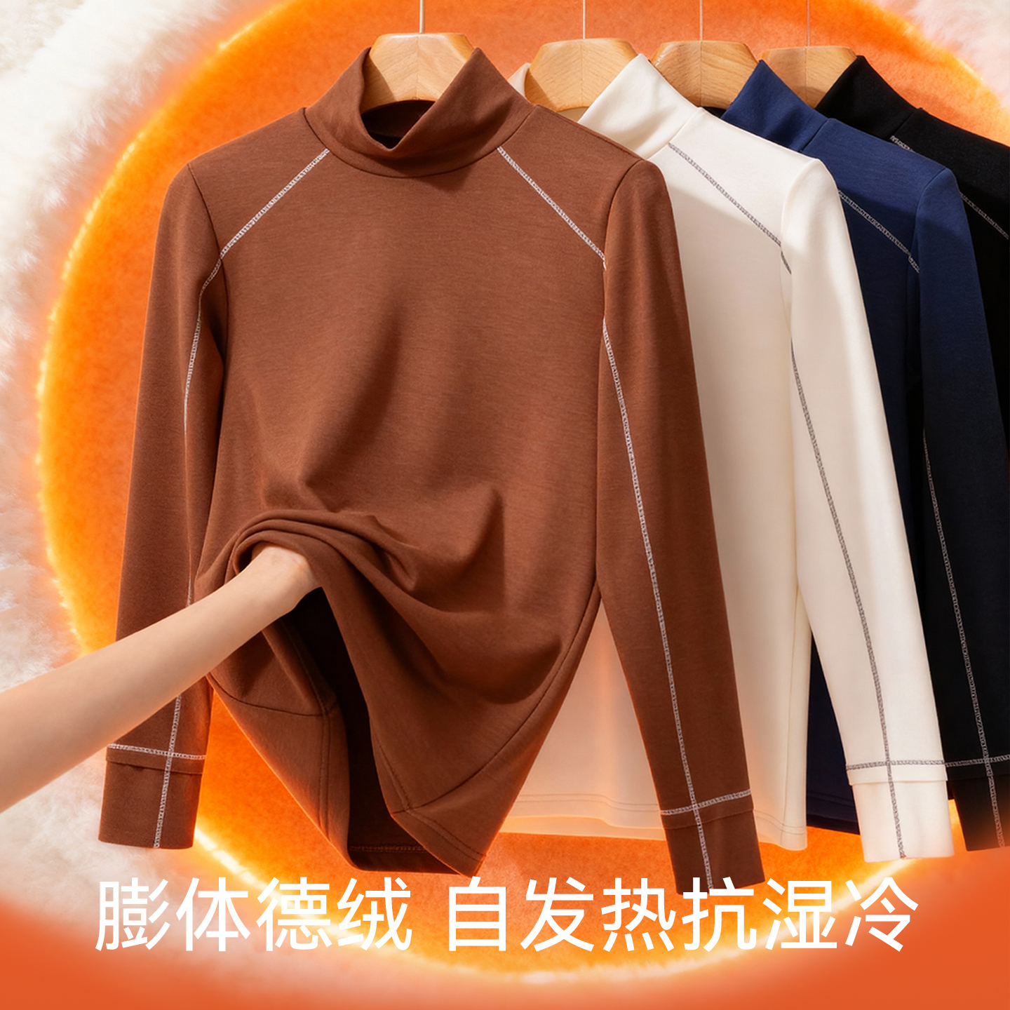打底秋衣 德绒发热蛋白绒美肤肌底衣长袖 羊毛保暖上衣女秋冬季 新款