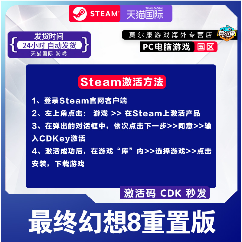 最终幻想8重置版 PC正版 FF8 CDKey 游戏 国区激活码 Steam