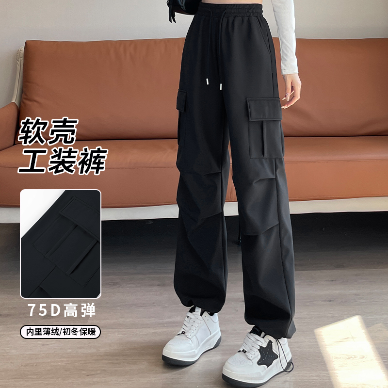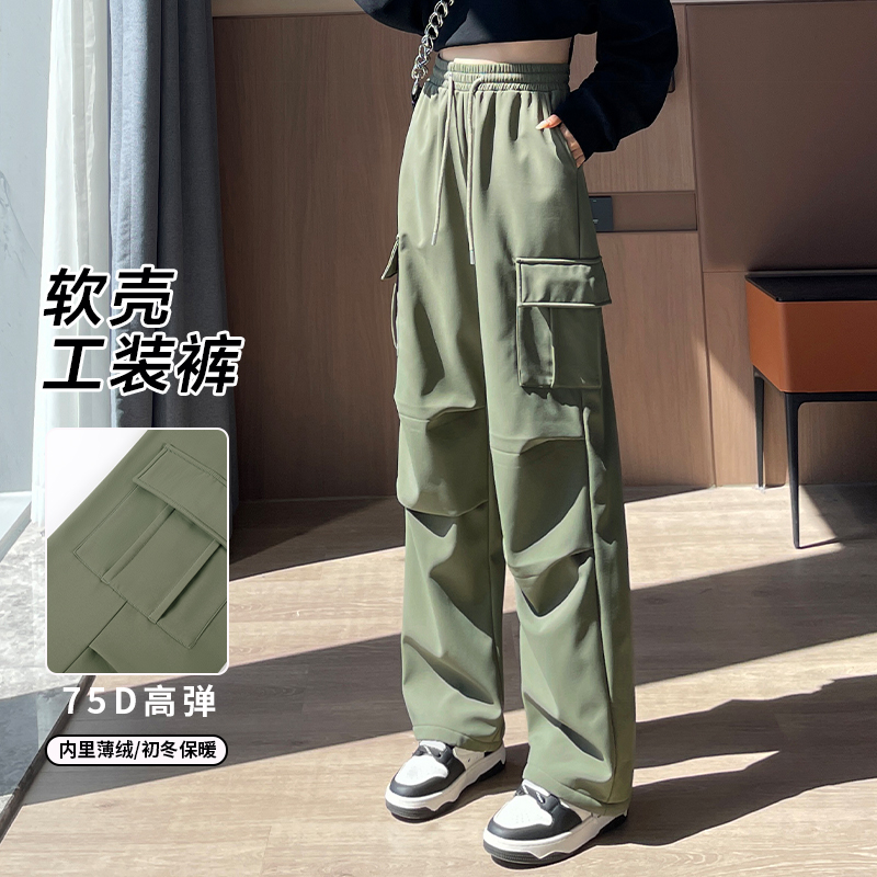 防风防水软壳运动登山裤 班尼路杏色加绒工装 新款 女2025秋冬季 裤