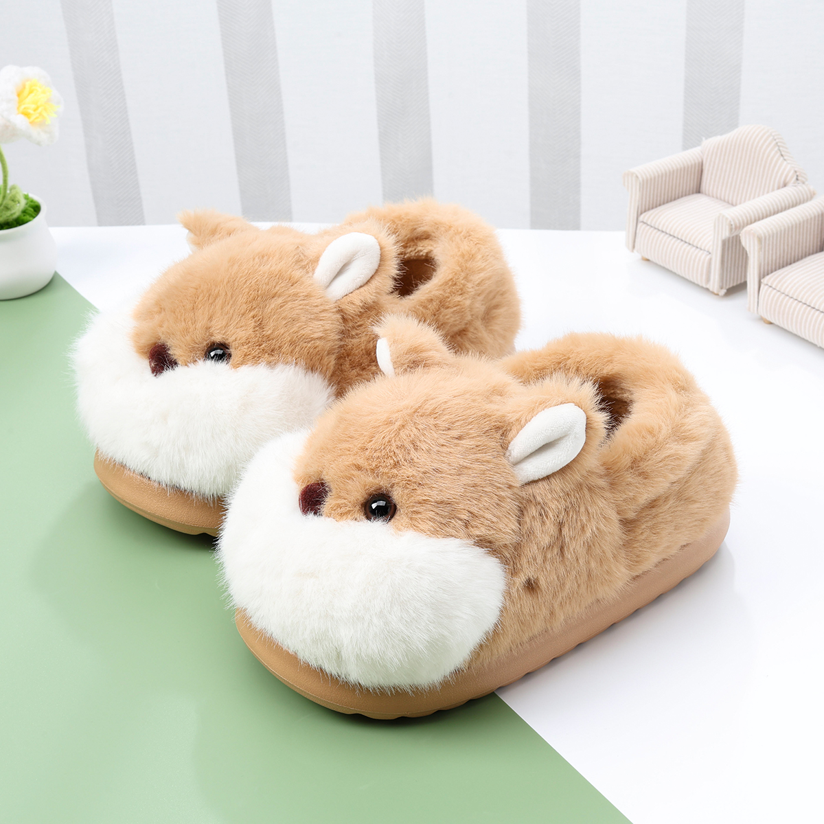 卡皮巴拉儿童棉拖鞋 男童可爱卡通居家防滑室内亲子女宝宝毛毛拖冬