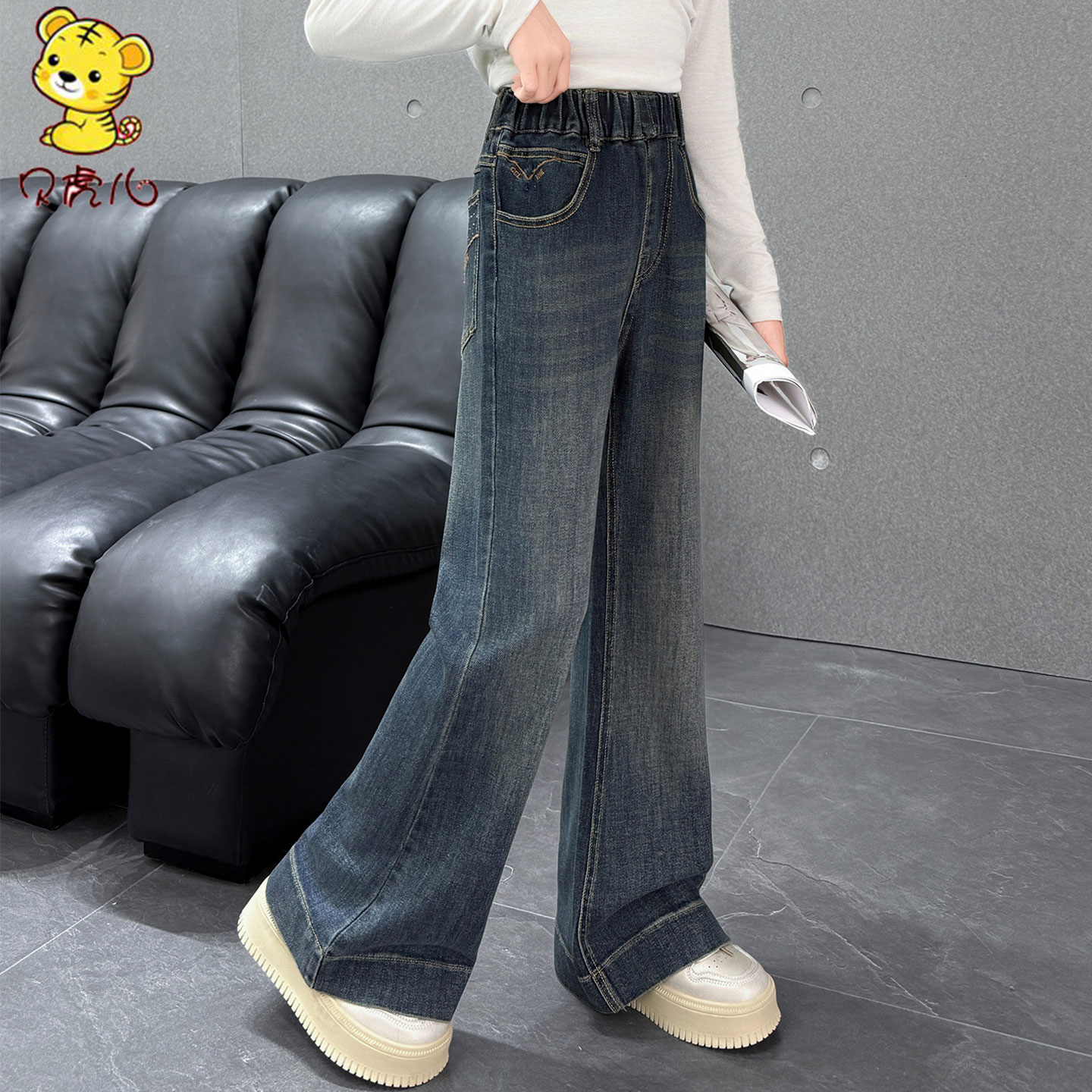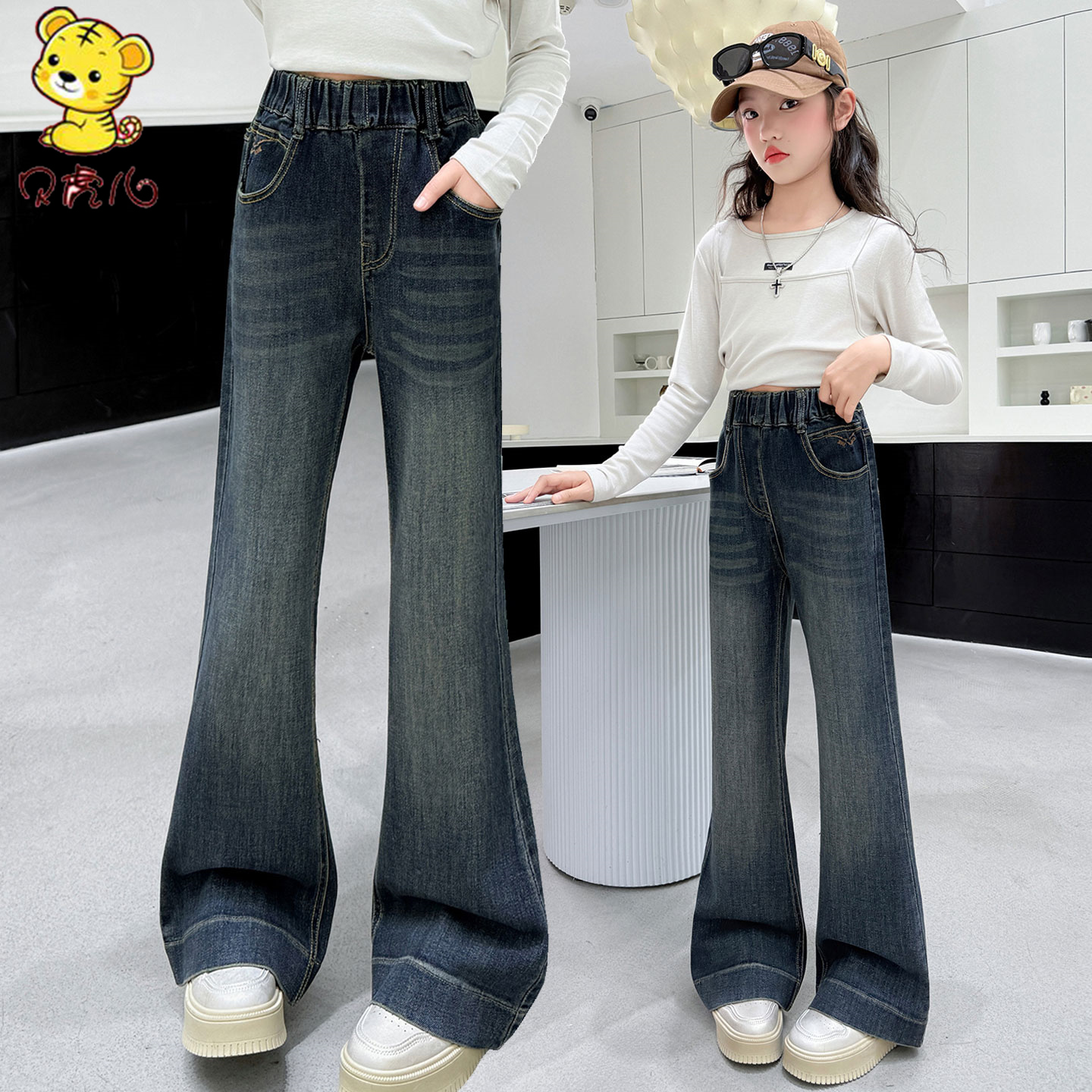 子秋冬外穿2025新款 儿童微喇叭裤 冬装 冬季 中大童牛仔裤 女童加绒裤