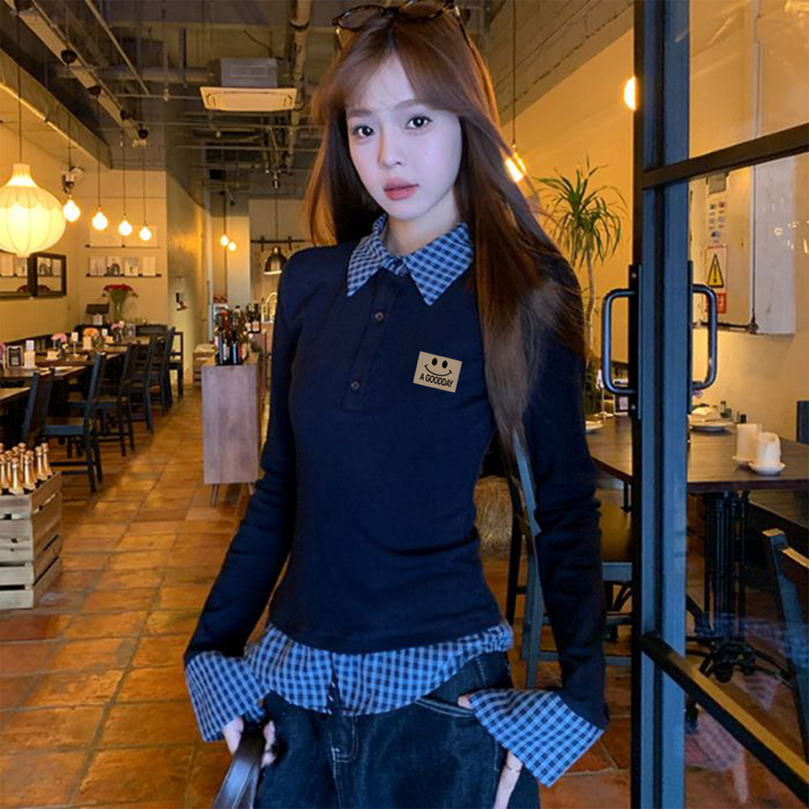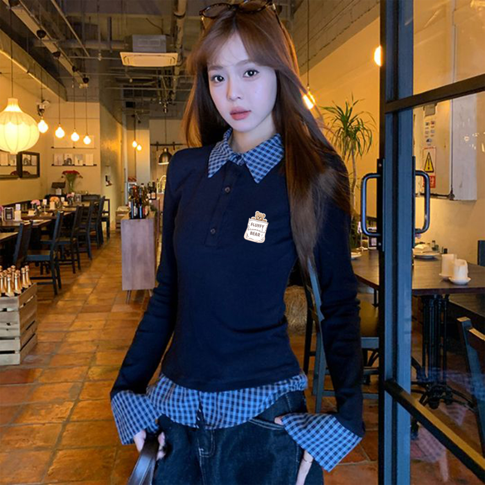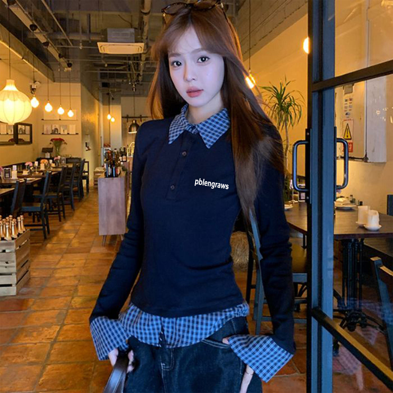 POLO领长袖 独特修身 女2025秋季 假两件显瘦打底衫 显瘦上衣 新款 法式