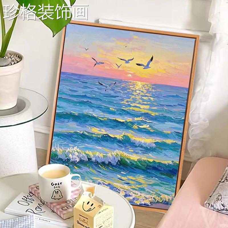 大油海与海鸥数字画风景diy手工FXJ绘填彩色涂色油高级感装 饰挂画