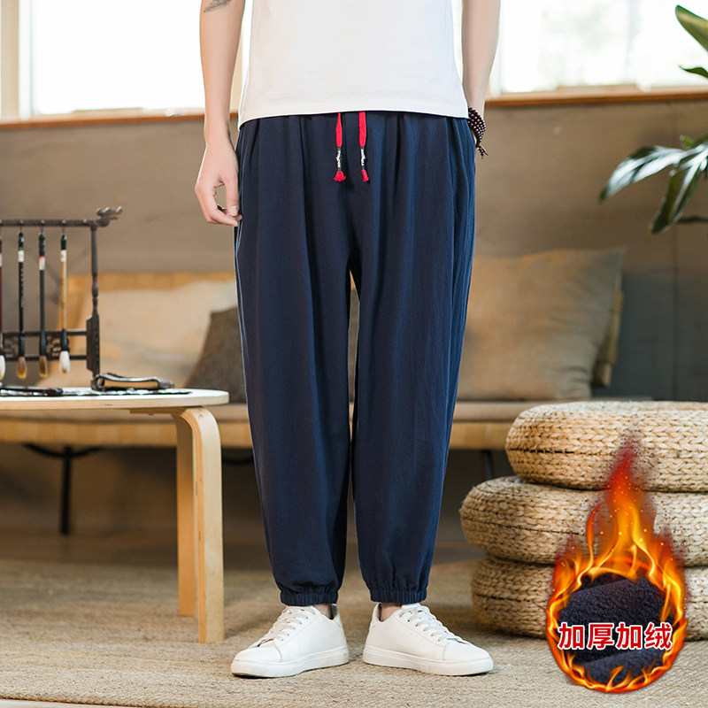 系带松紧宽松百搭休闲裤 鸭鸭羊毛蚕丝保暖卫裤 男士 新款 2025秋季