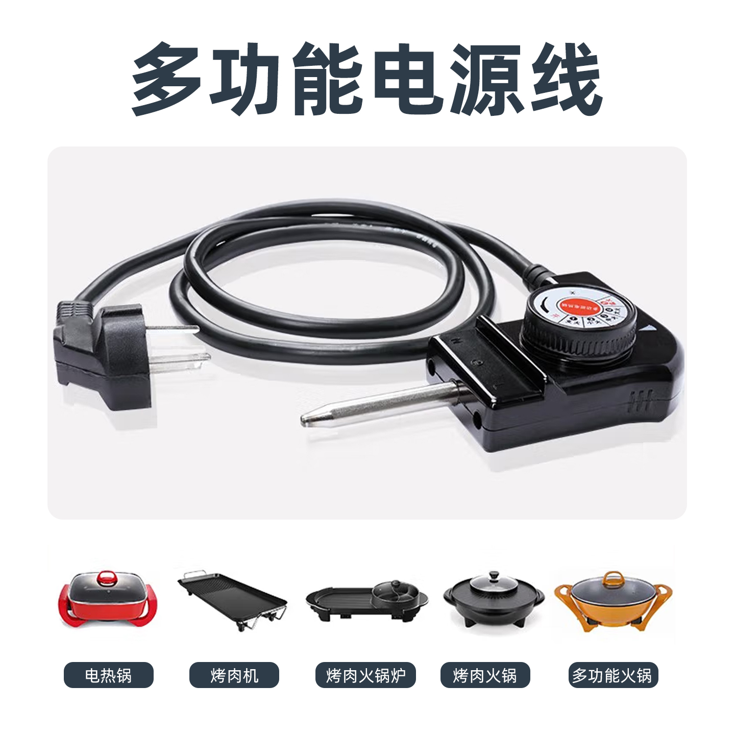 多功能电热锅电源线电火锅煮锅涮烤一体锅调温耦合器通用开关插头