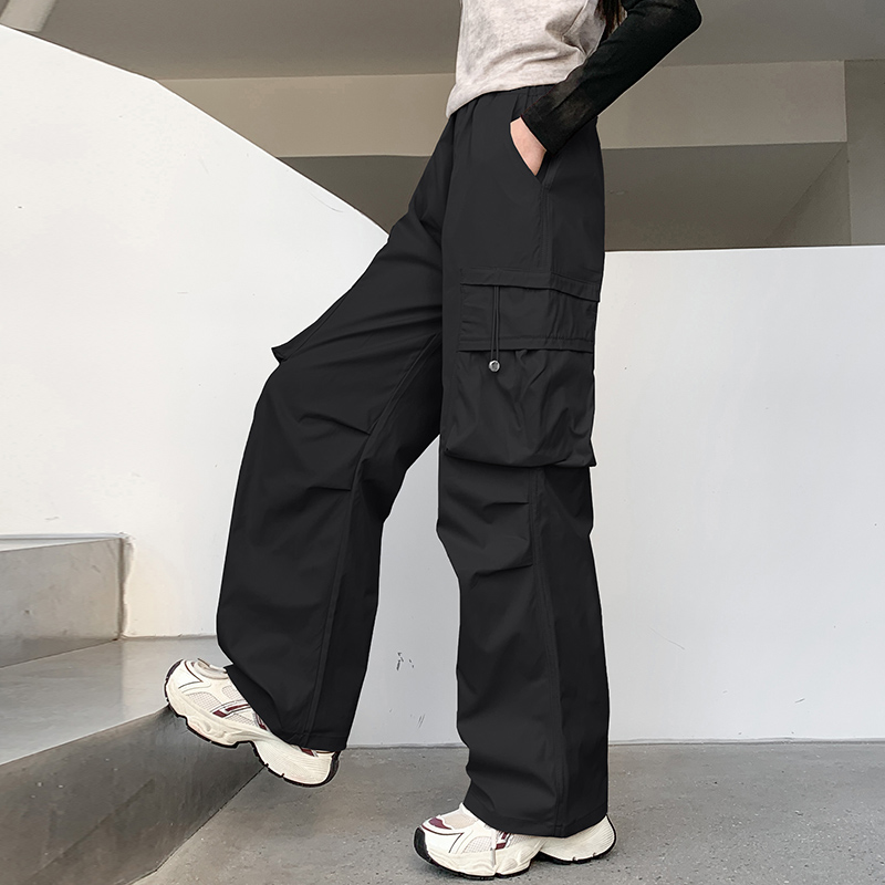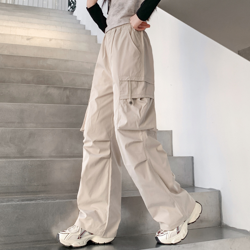 高腰直筒阔腿韩系慵懒松弛感裤 新款 子 女2025年秋季 灰色垂感糯米裤