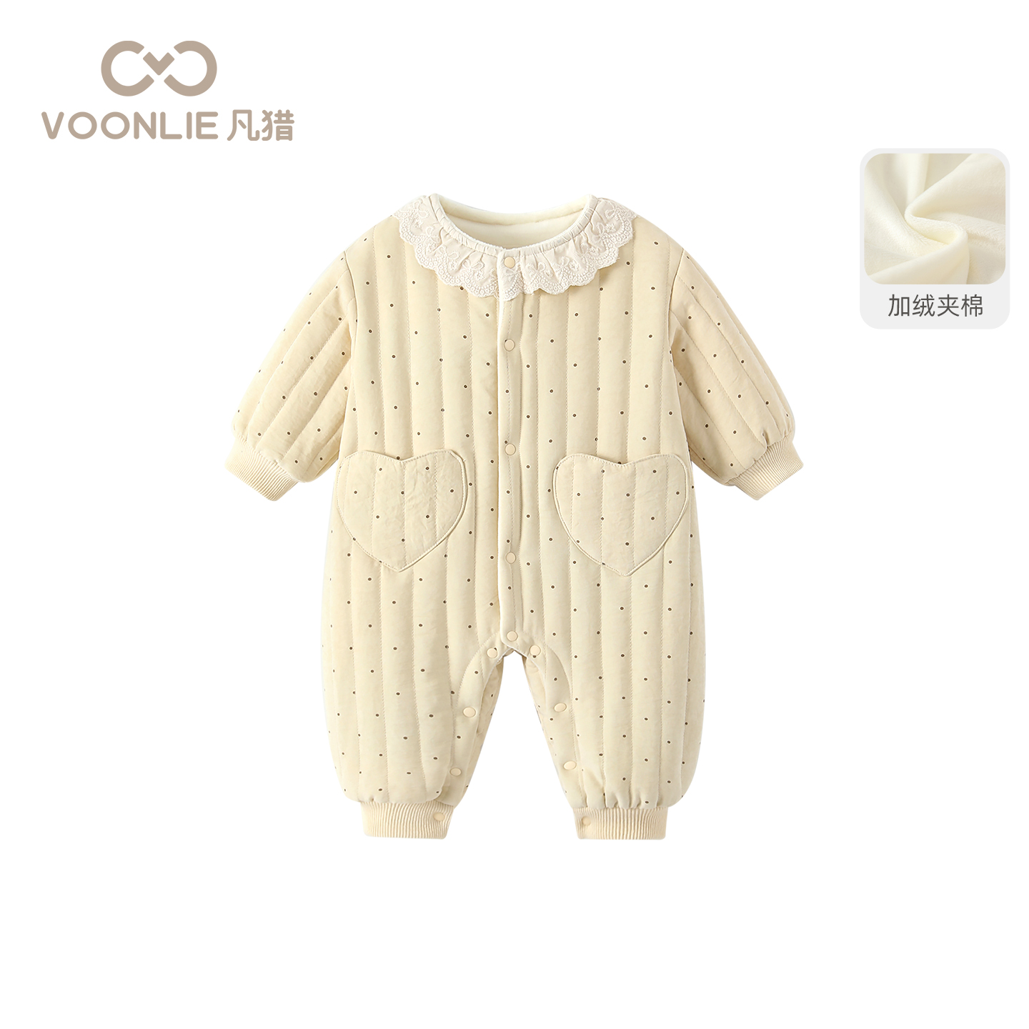 婴儿衣服冬装 新生女宝宝加绒夹棉连体衣满月加厚保暖外出哈衣爬服