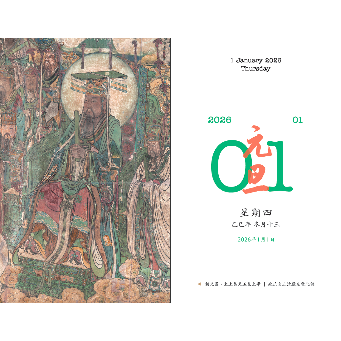 高清壁画 永乐宫日历2026 飞机盒 基础款 365日每日一图神仙人物服配饰器具纹样传统文化壁画2026年日历 光栅卡