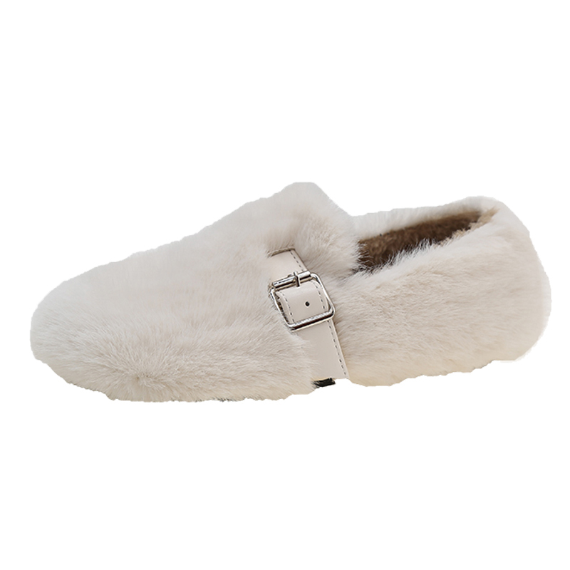 可爱白色毛毛鞋 平底鞋 女鞋 子外穿冬季 毛绒鞋 加绒百搭保暖棉鞋 单鞋