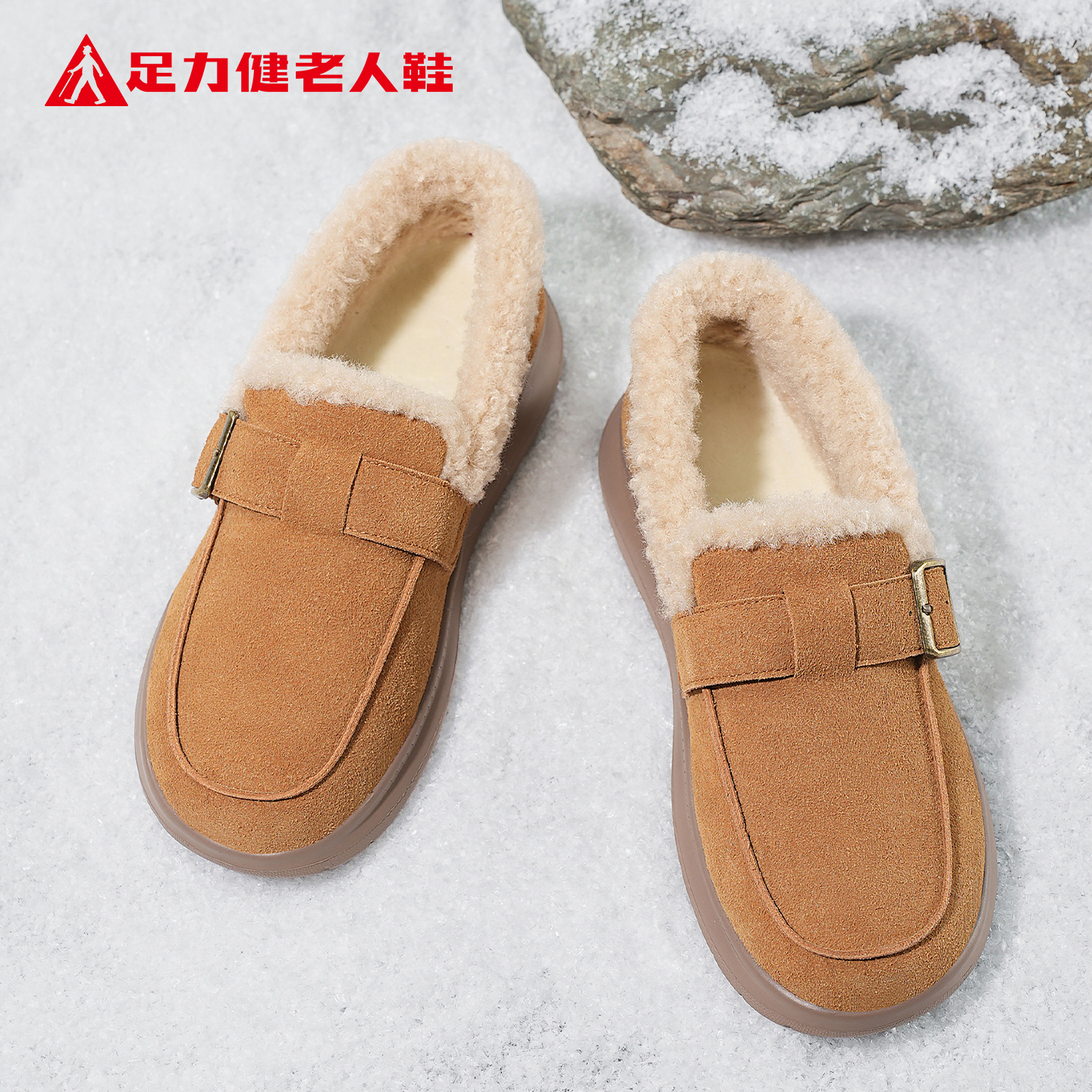 加绒加厚保暖一脚蹬软底防滑妈妈鞋 新款 雪地靴 女2024冬季 棉鞋