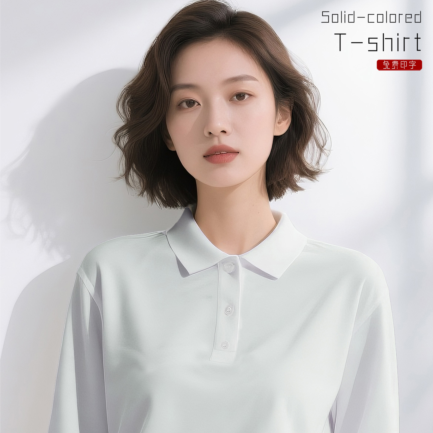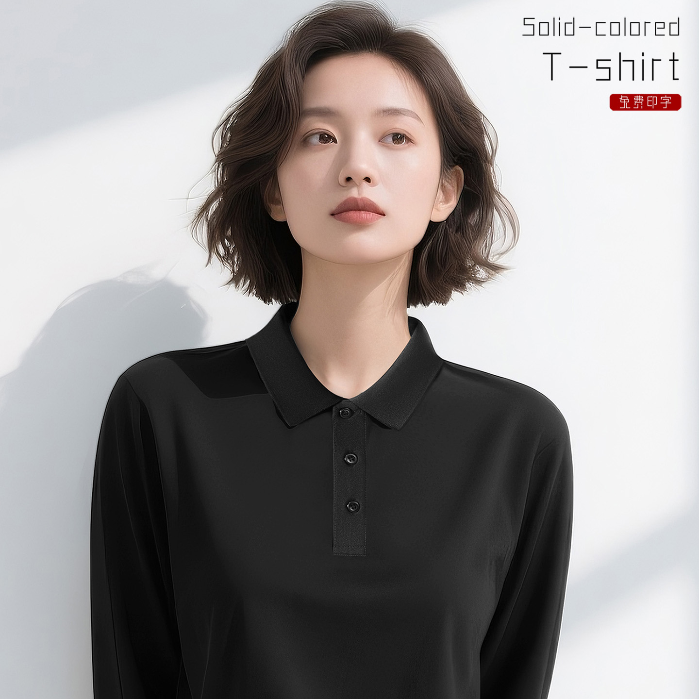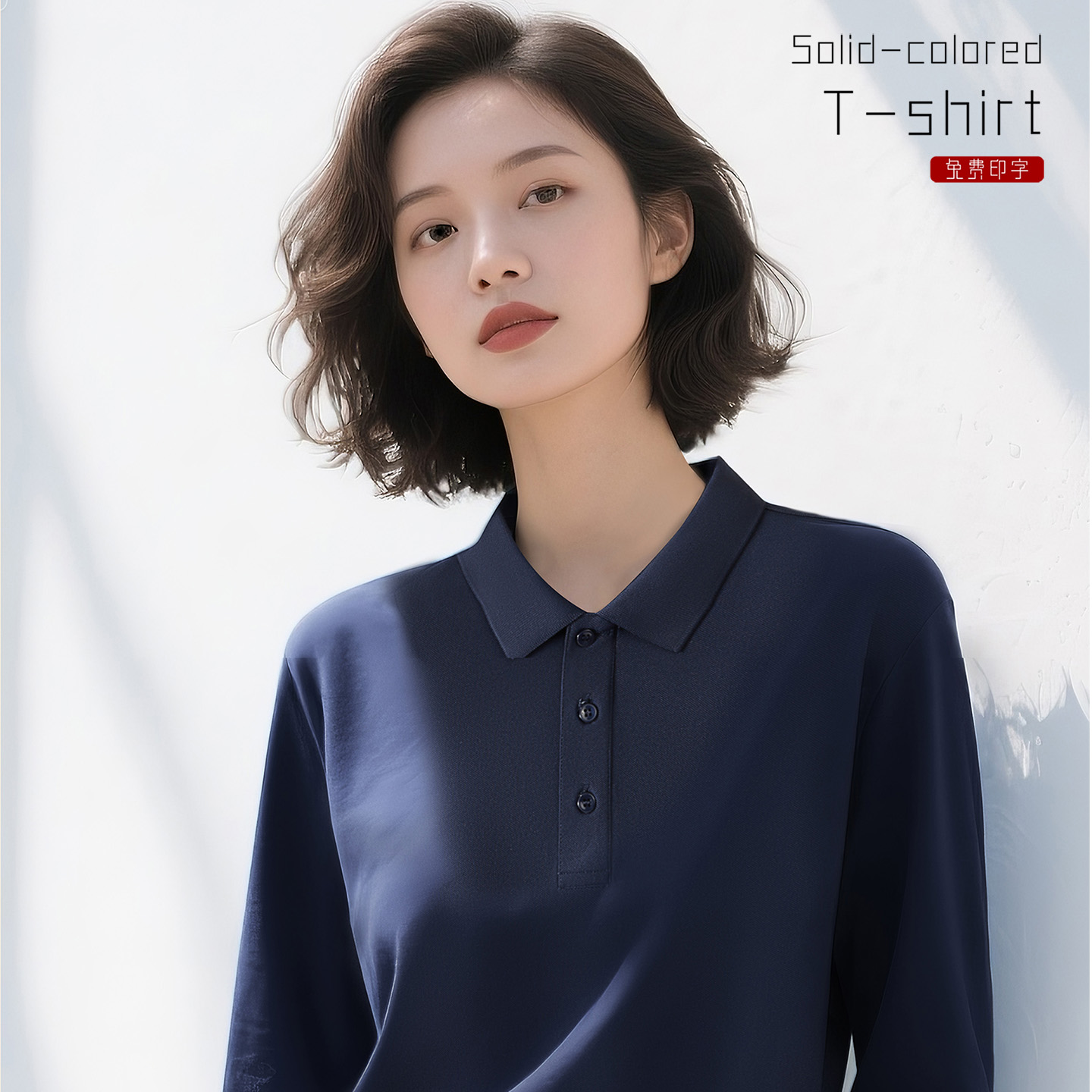 polo衫 工作服员工t恤定制印logo商务休闲纯色工装 多巴胺 长袖 秋装