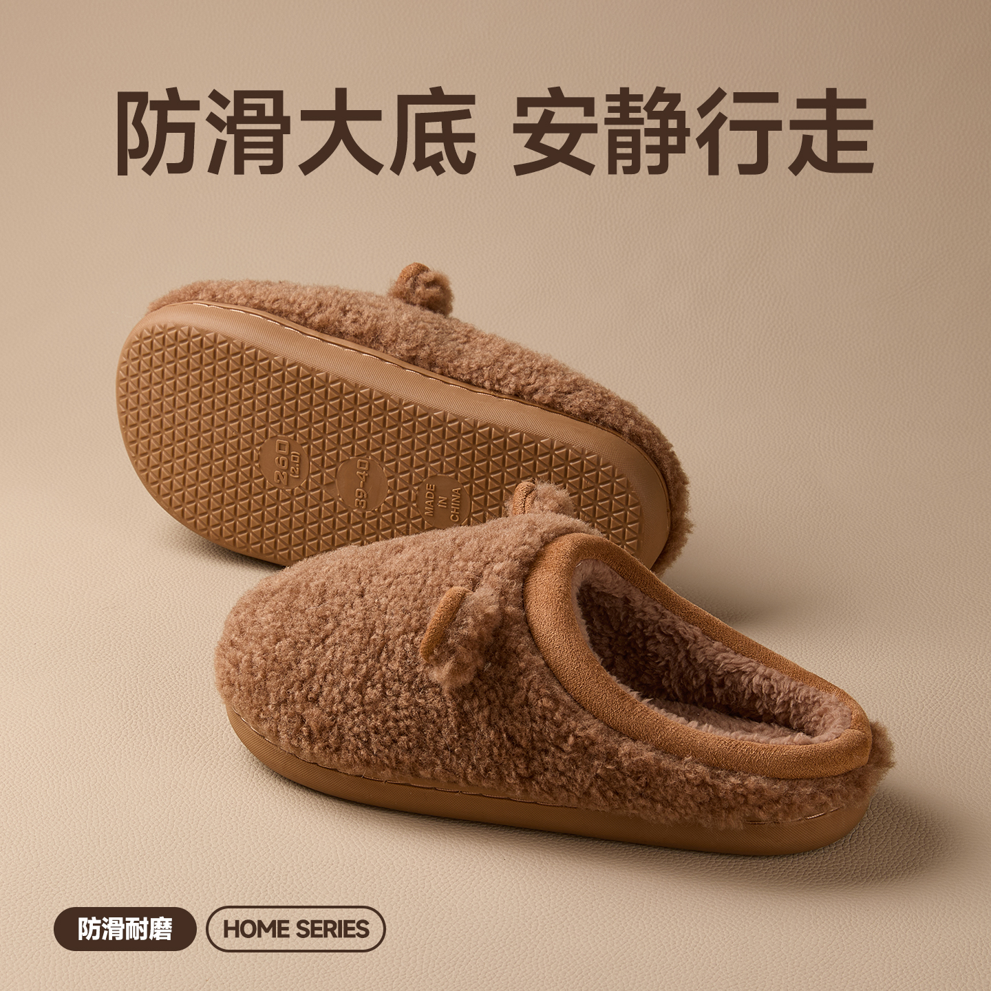 厚底防滑毛绒拖鞋 室内居家加绒保暖月子鞋 男 女冬季 卡通小熊棉拖鞋