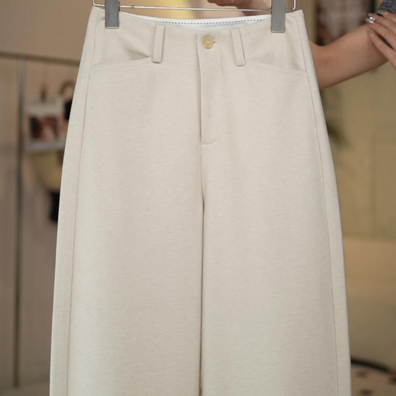 高腰显瘦直筒长裤 冬季 窄版 女云朵呢月亮香蕉裤 加绒加厚弯刀阔腿裤