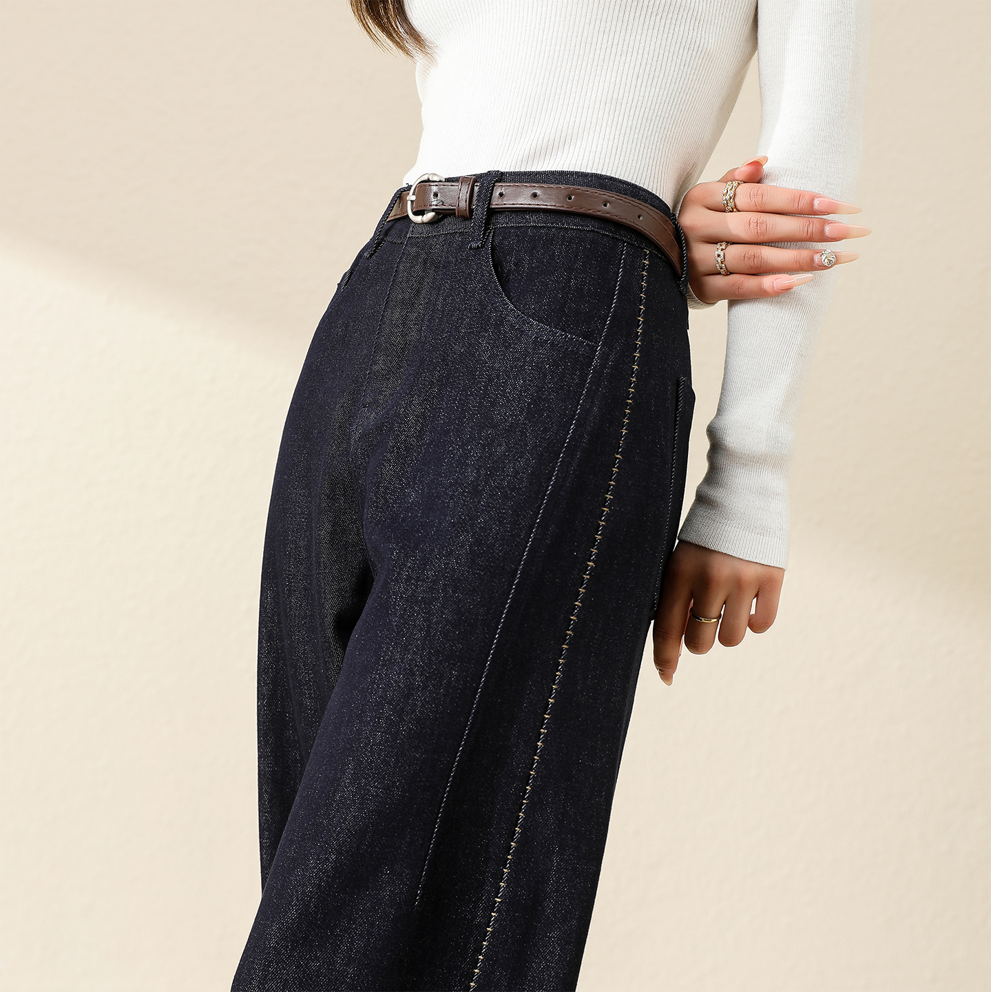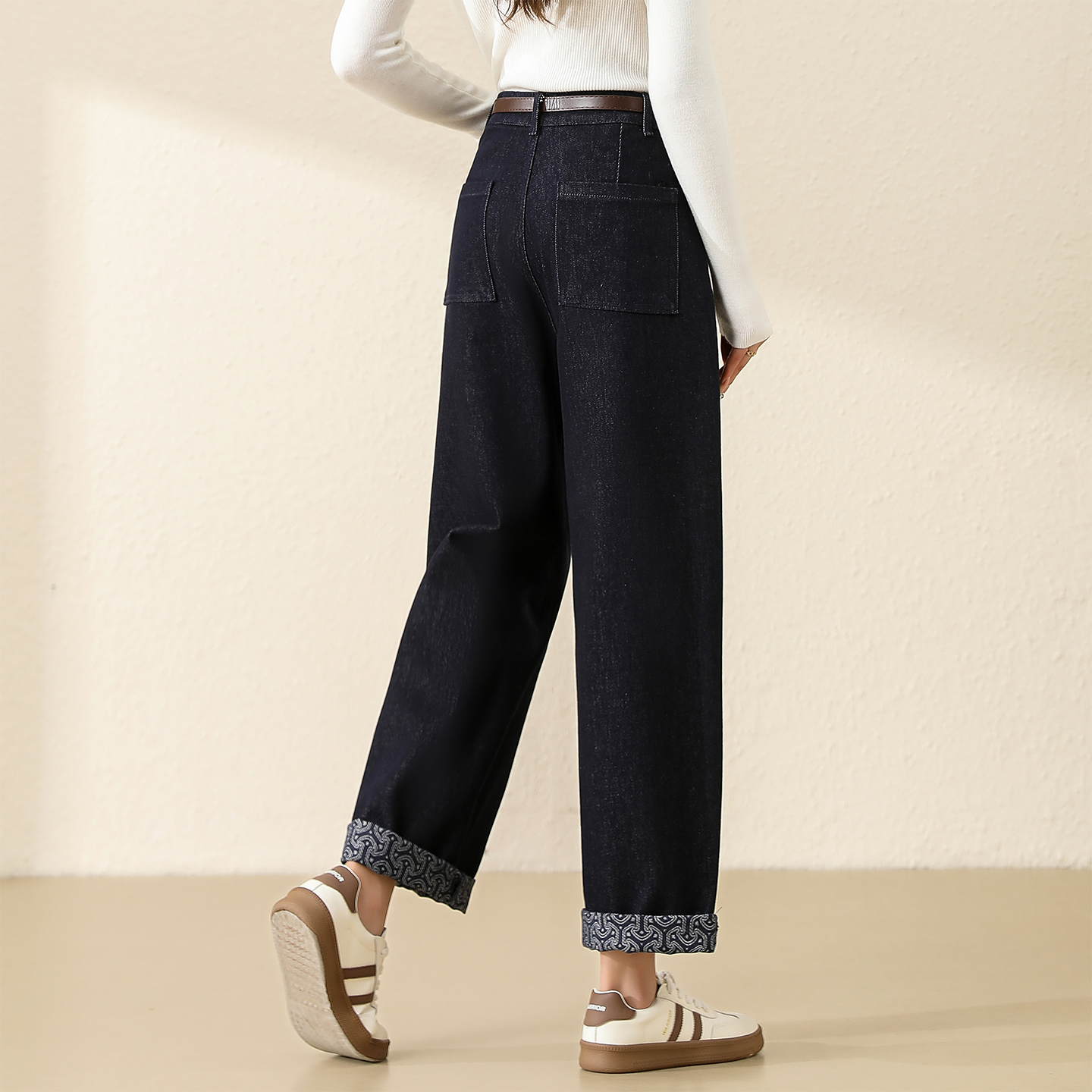 女高腰宽松显瘦卷边九分阔腿羊角裤 丹宁蓝弯刀牛仔裤 新款 2025秋季