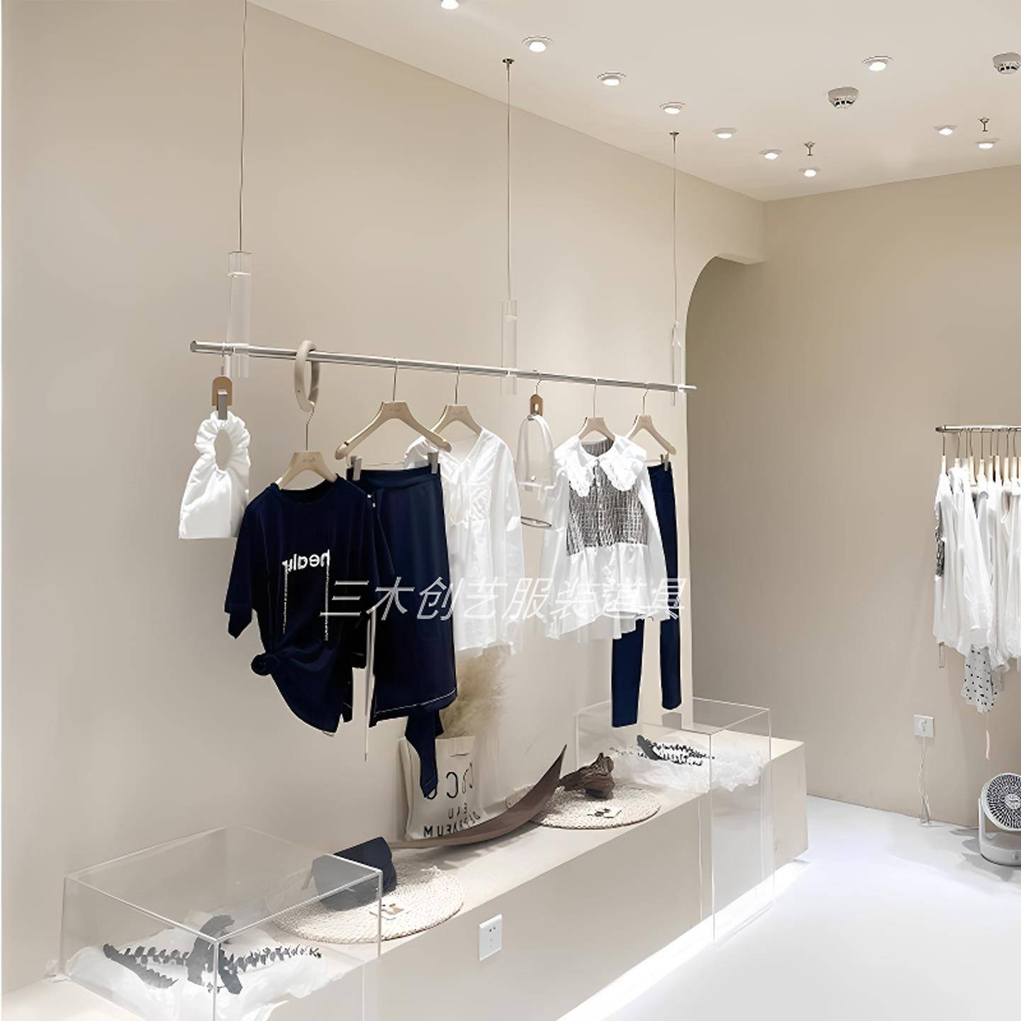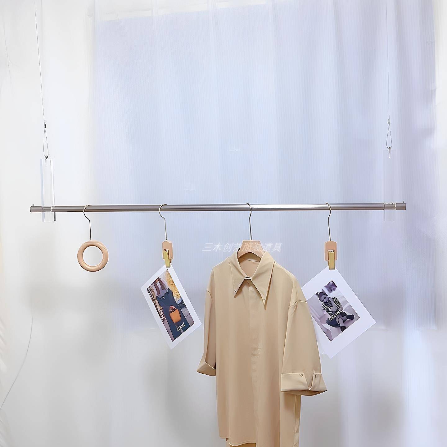 服装 橱窗陈列货架钢丝侧挂展示架 店不锈钢吊架悬挂衣杆压克力女装