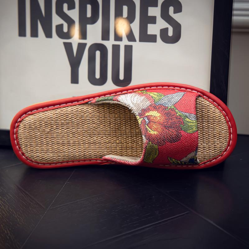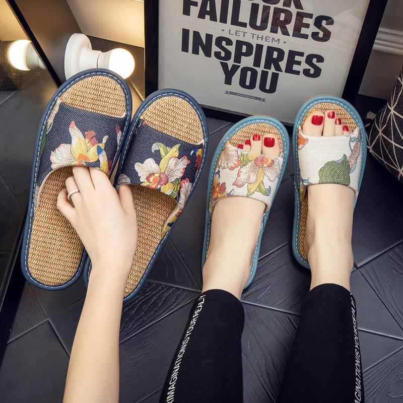 冬国风软底女季 女室内地板防滑布艺面情侣居家用1006e 凉拖鞋
