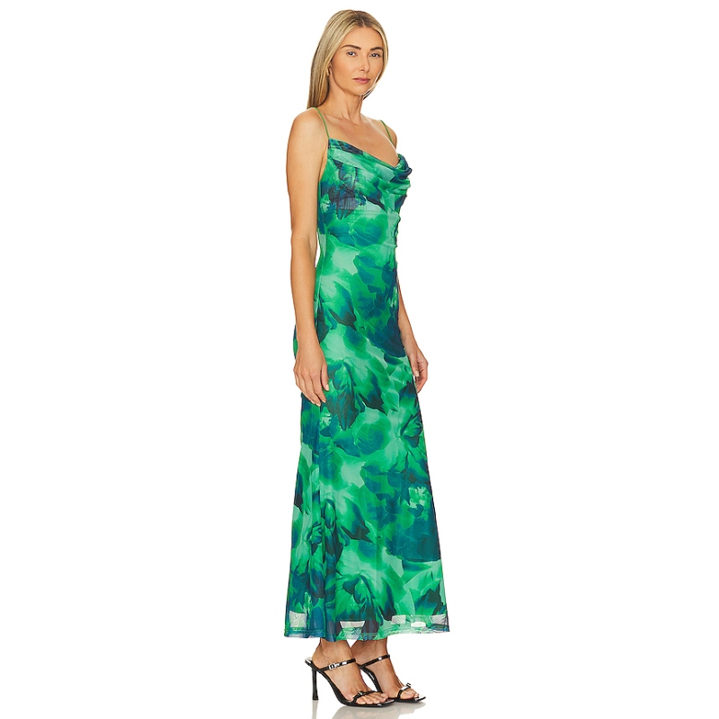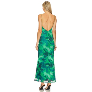 HM女装 度假风亚麻混纺方领植物印花吊带长裙1217048 连衣裙夏季