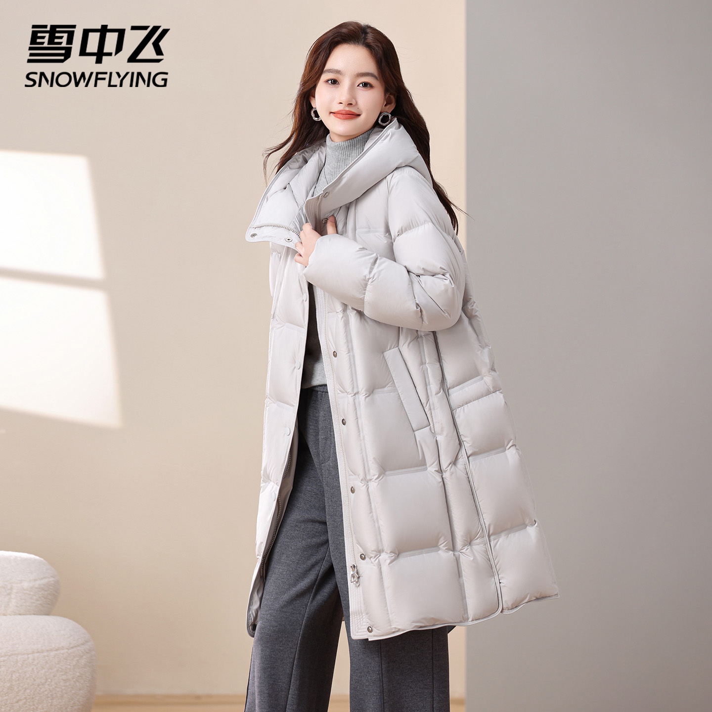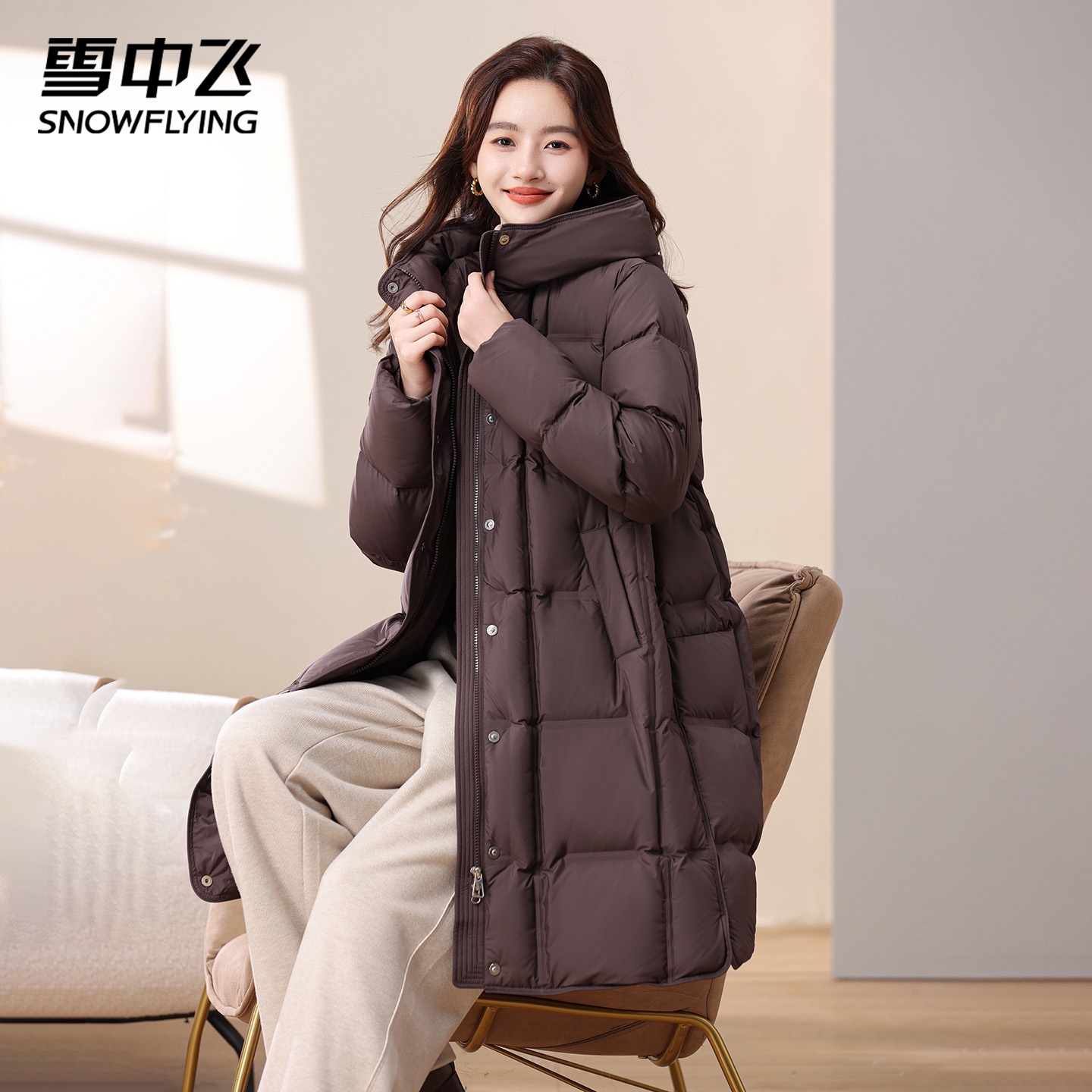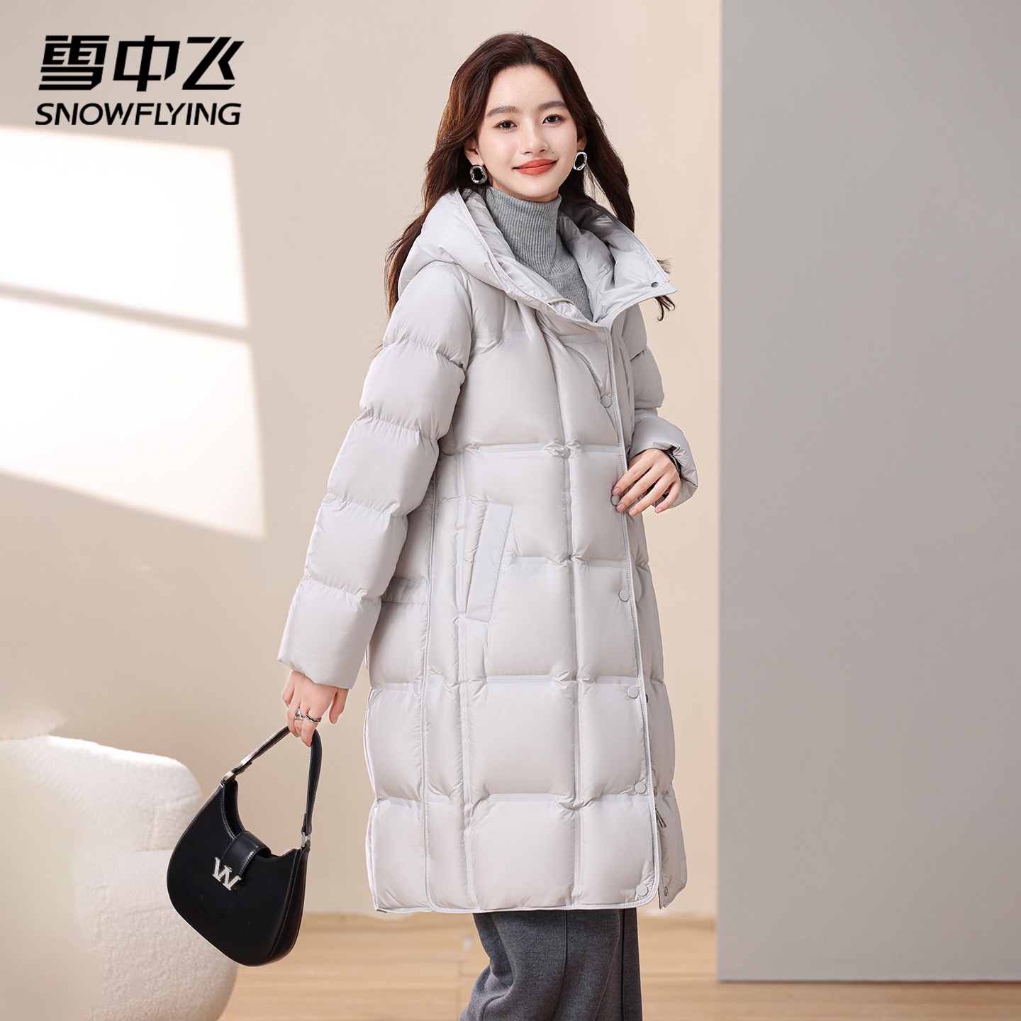 时尚 休闲加厚立领连帽女士长款 高充绒保暖羽绒服 冬季 鸭鸭2025新款