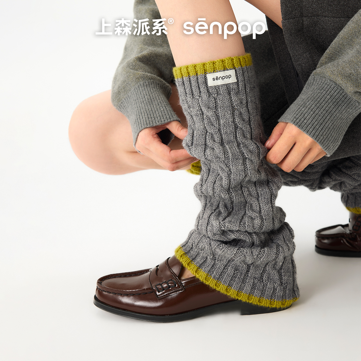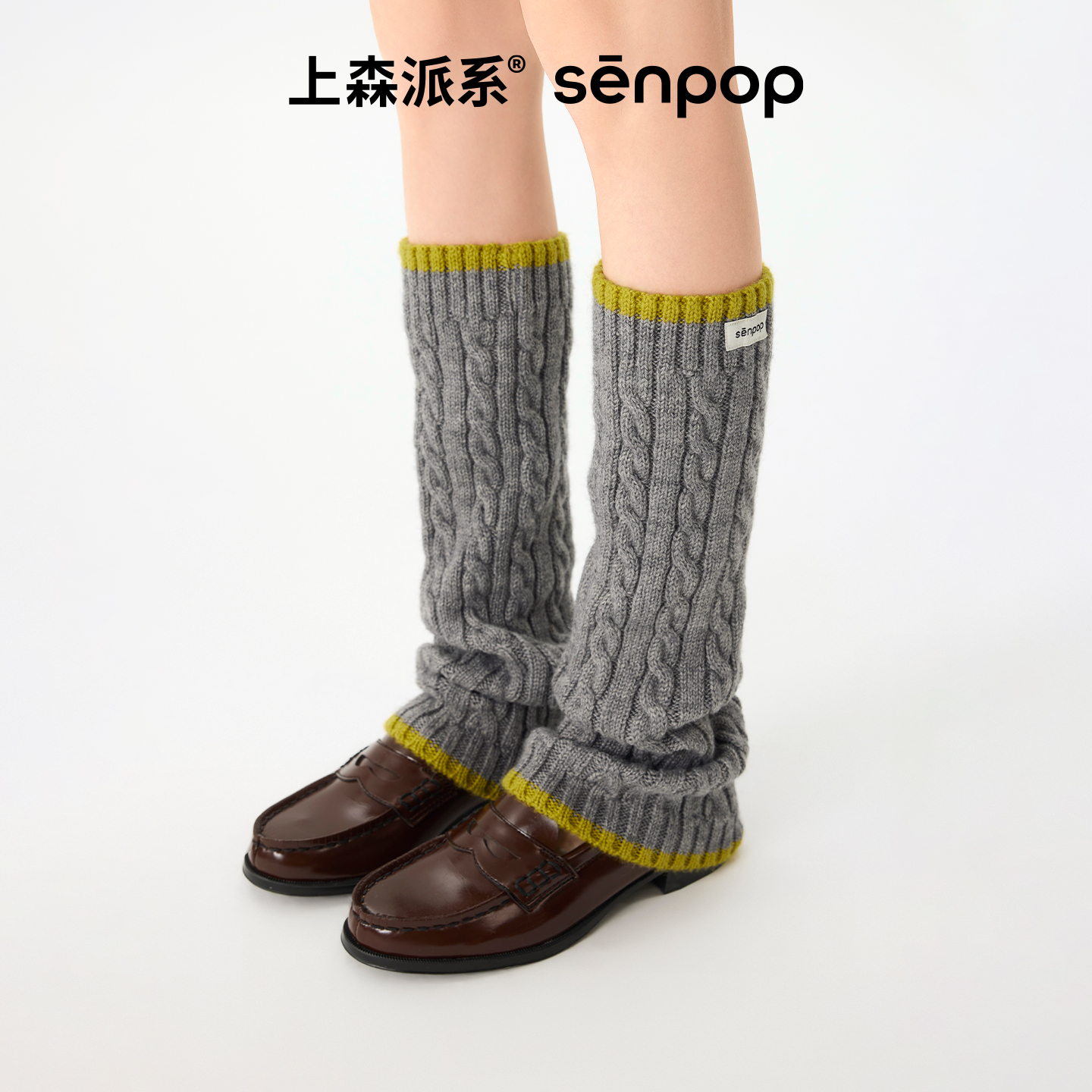 上森羊毛堆堆袜套miu系棕小腿袜套女秋冬美拉德长筒袜勃肯鞋 腿套