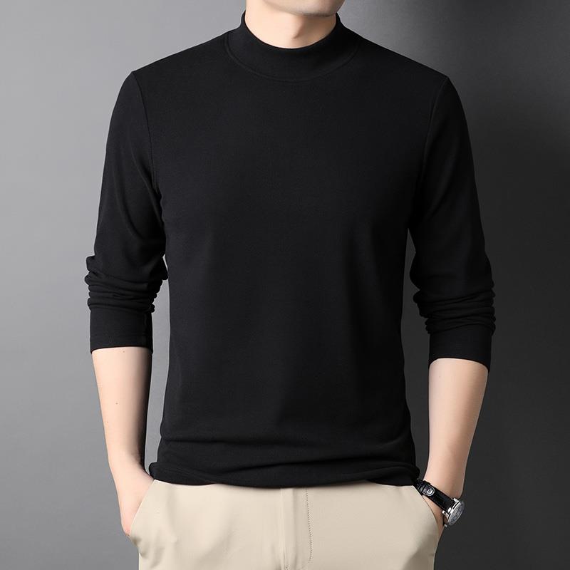 男装 韩版 青年内搭 t恤男中领绒布体恤春秋冬季 保罗官方半高领长袖