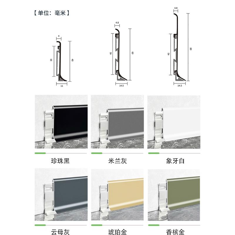铝合金踢脚线极简奶油风墙角线卡扣式 468厘加厚金属地脚线贴脚线