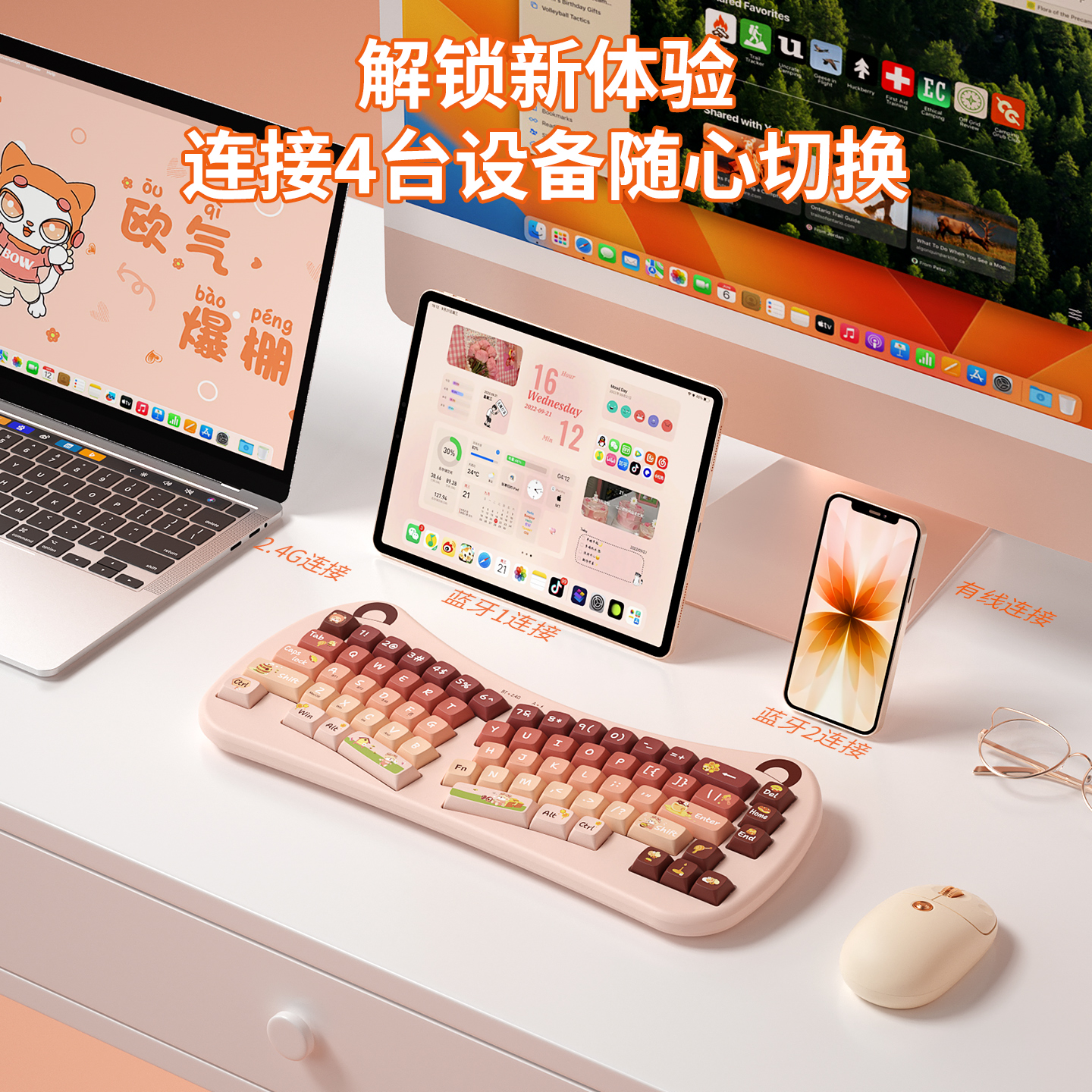 狼蛛S98无线机械键盘鼠标套装 无线三模电竞游戏办公青红茶黑轴