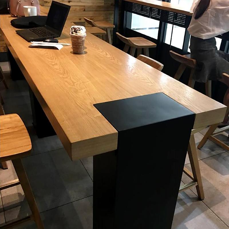 吧台桌椅高脚实木长条桌现代酒吧台前台会客桌奶茶咖啡店餐桌椅