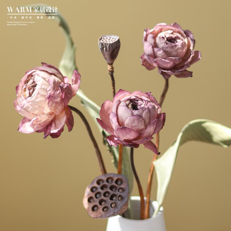 莲蓬干花花束真花摆件客厅摆设花瓶装 饰品风干荷叶荷花天然新中式