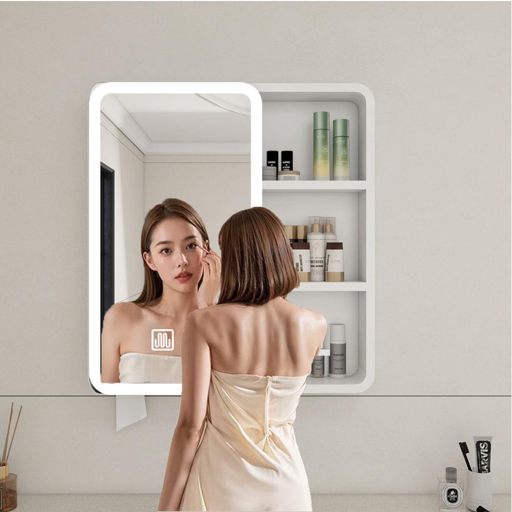 圆弧形太空铝浴室挂墙式 镜柜单独智能感应卫生间收纳镜箱带抽纸孔