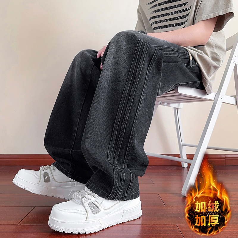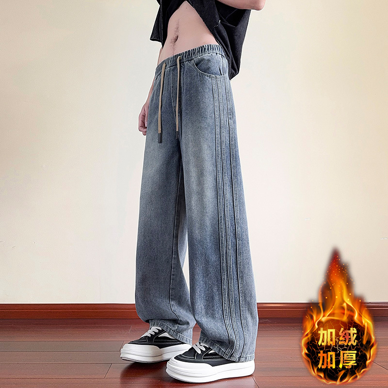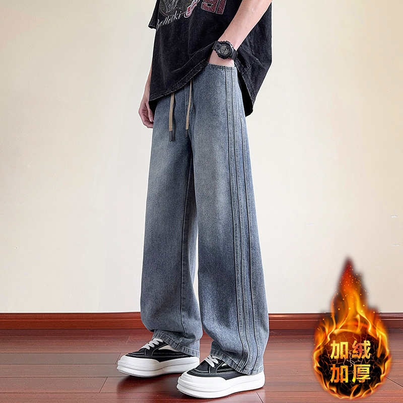 男款 休闲加绒长裤 2025秋冬新款 复古宽松直筒裤 子男 美式 回力牛仔裤