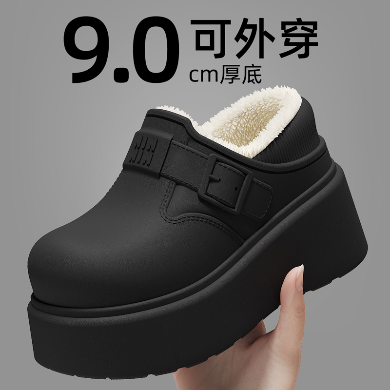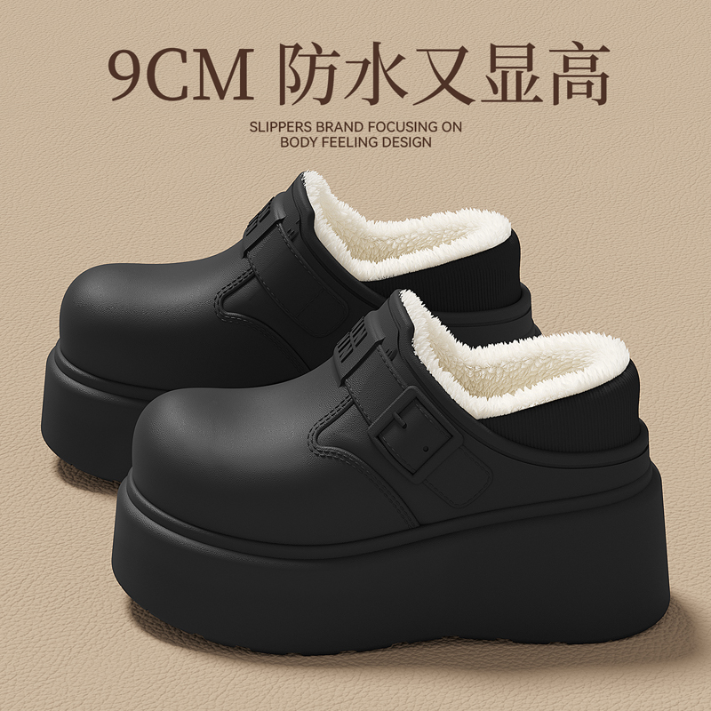女款 增高防水防滑保暖加绒棉鞋 冬季 外穿时尚 女 2025新款 厚底棉拖鞋