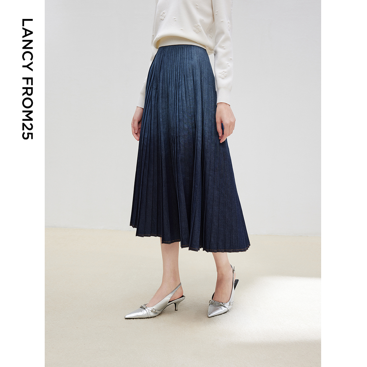 高级感气质法式 新款 5年春季 渐变高腰a字百褶半身裙设计感 舒心