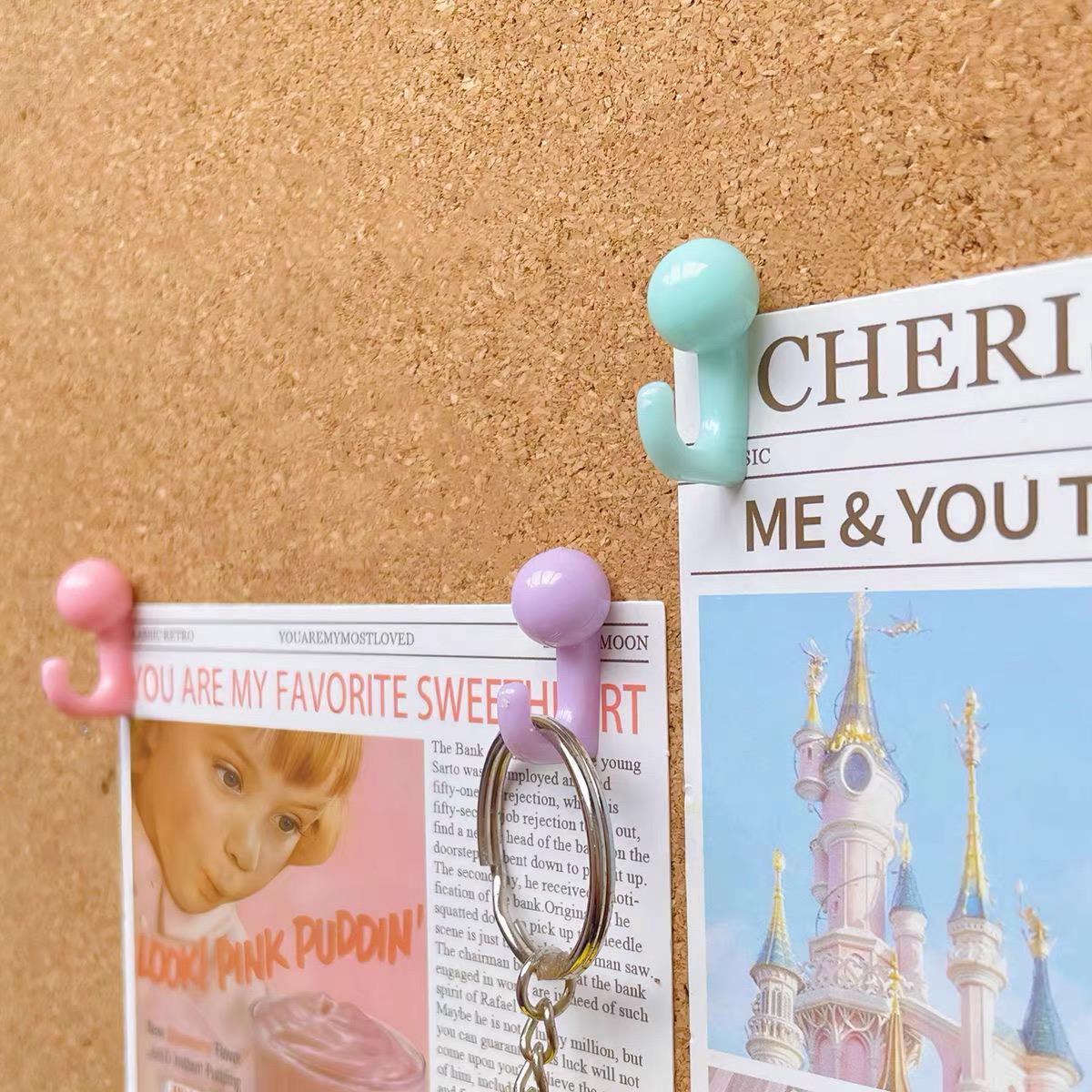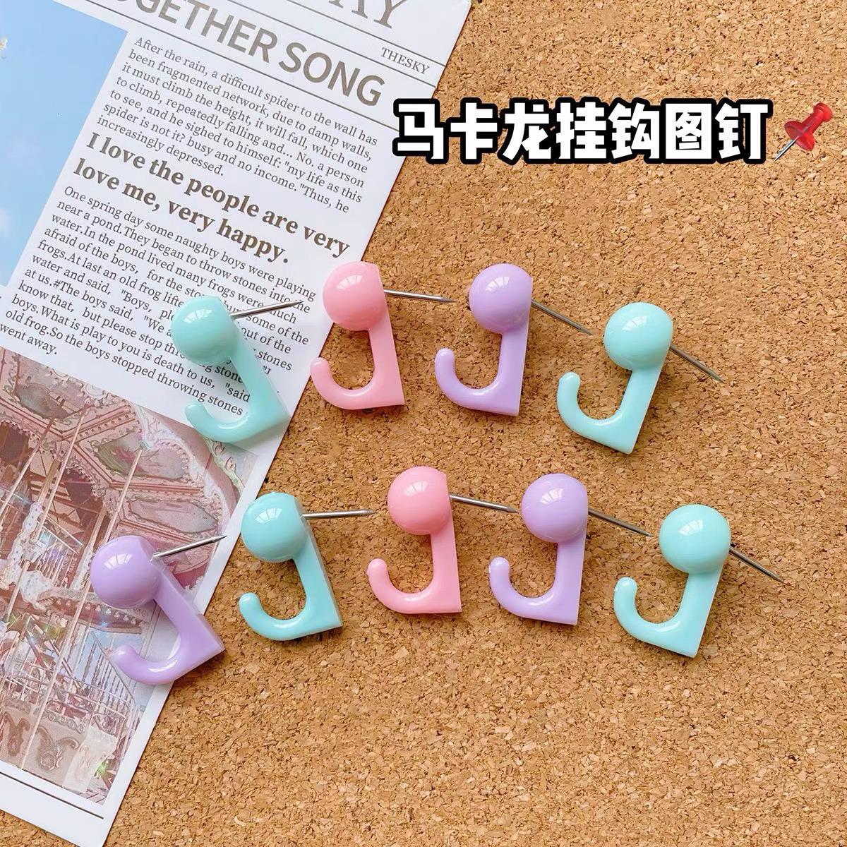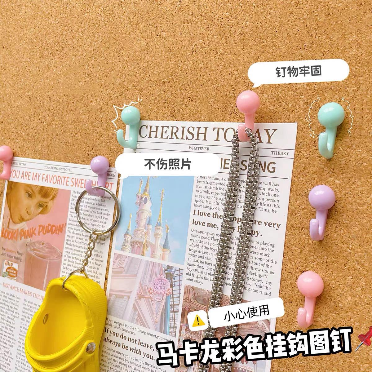 彩色图钉挂钩软木毛粘板大头钉图钉按钉收纳项链钥匙首饰装 饰ins