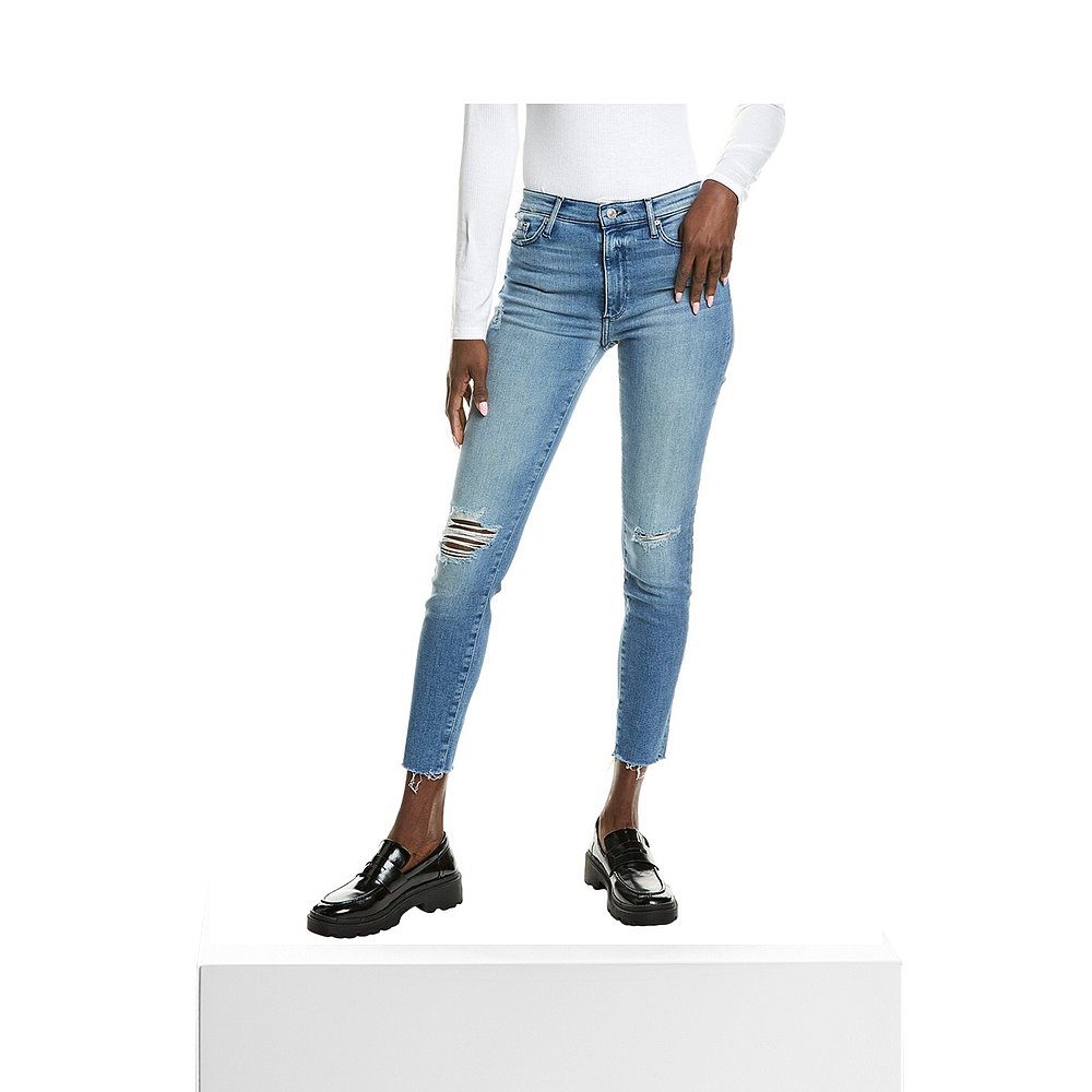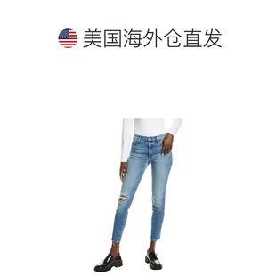 女010GAS11 王MOUSSY直筒毛边磨损高腰牛仔裤 5440 裤 明星同款