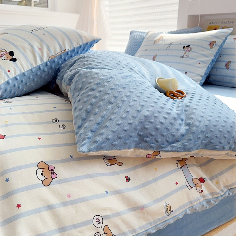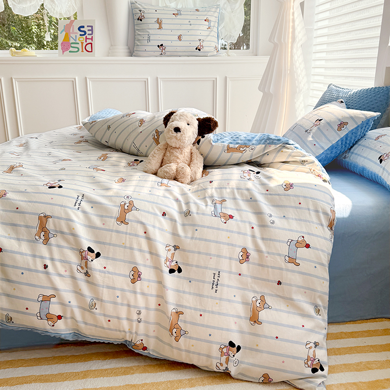 无印良品全棉床单学生宿舍纯棉卡通儿童被套秋冬三件套床上用品