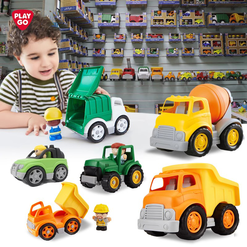 playgo儿童小号玩具车警车小汽车混泥土救护车宝宝工程翻斗消防车