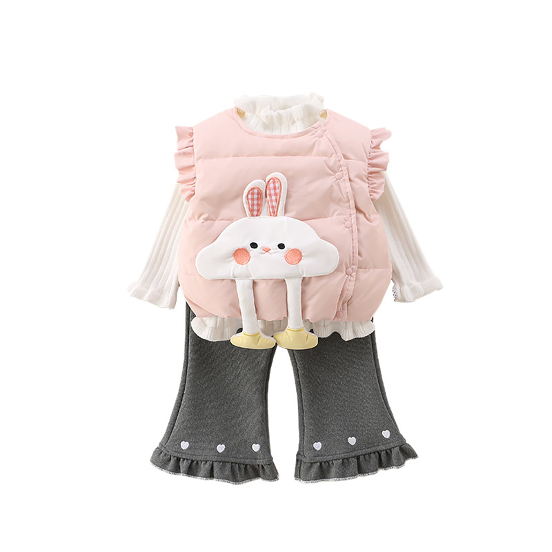 Kmi婴儿衣服冬季 女童超洋气保暖 轻薄羽绒马甲秋冬加绒毛衣微喇裤