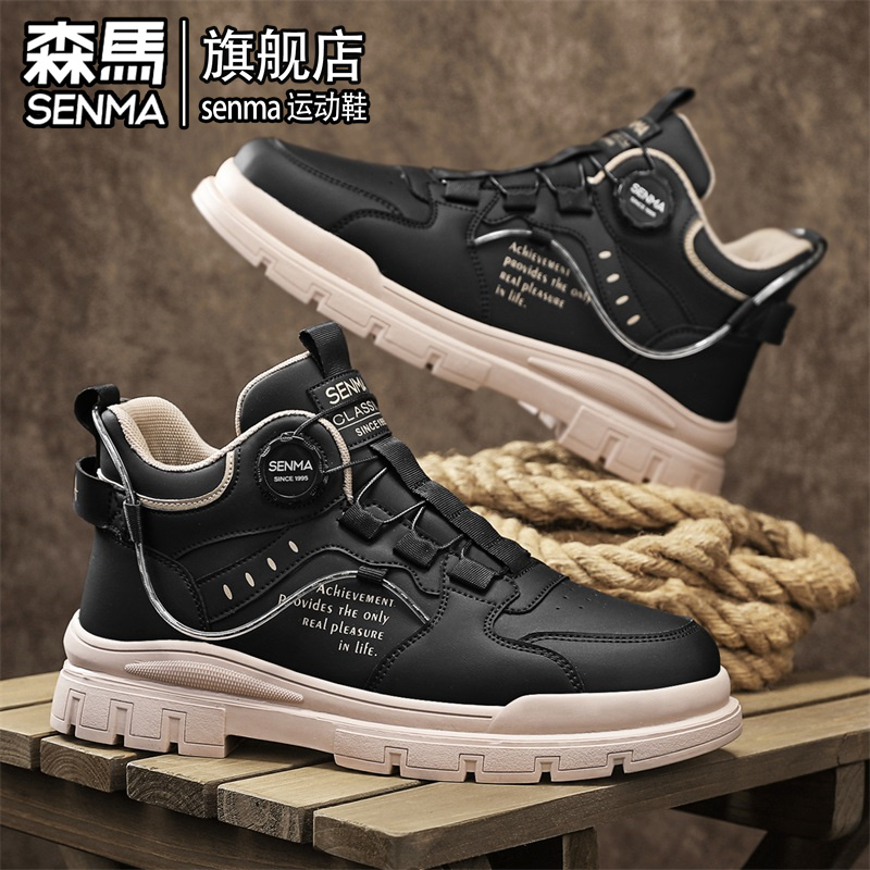 男鞋 子软弹平底鞋 厚底增高情侣休闲鞋 女鞋 革面 运动鞋 特步秋冬板鞋