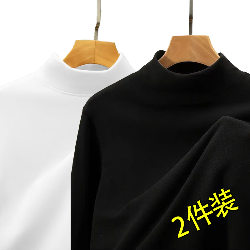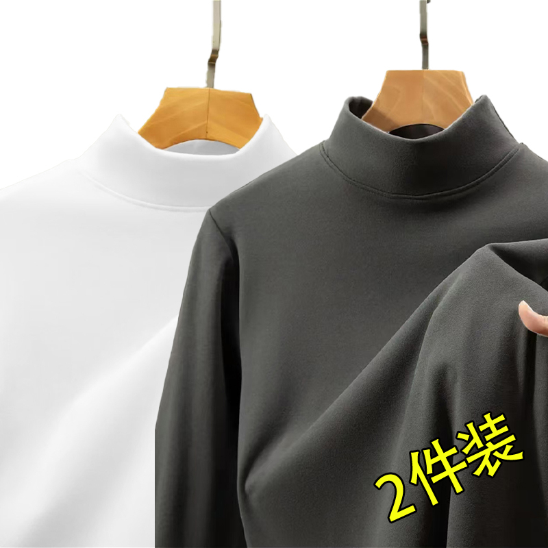 男保暖休闲内搭秋衣加厚打底衫 秋冬季 双面绒磨毛半高领纯色长袖