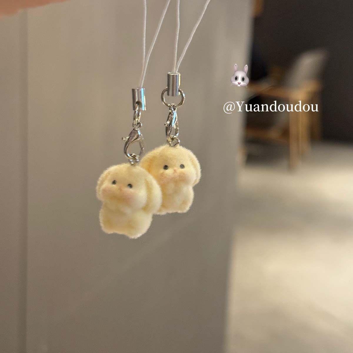 可爱动物气呼呼小兔钥匙扣植绒汽车摆件手机包包挂链新年装 饰挂件