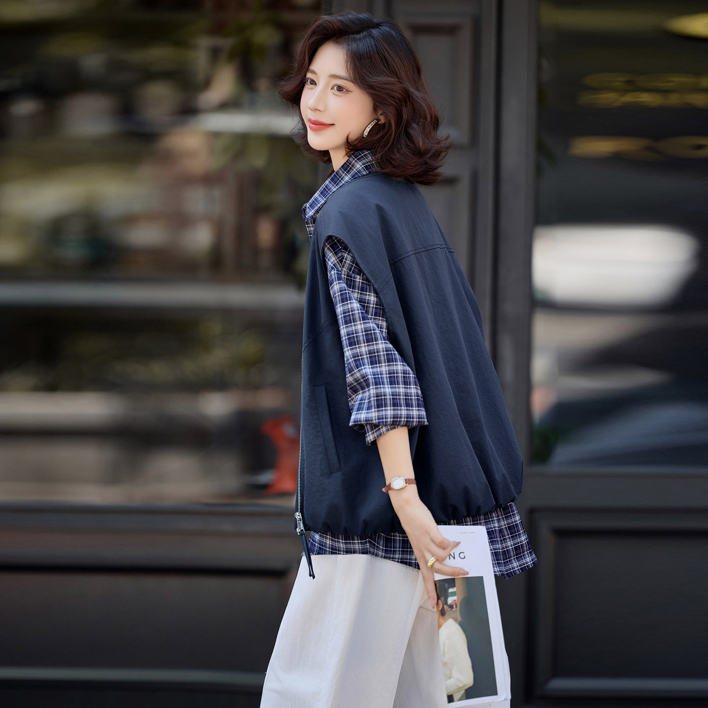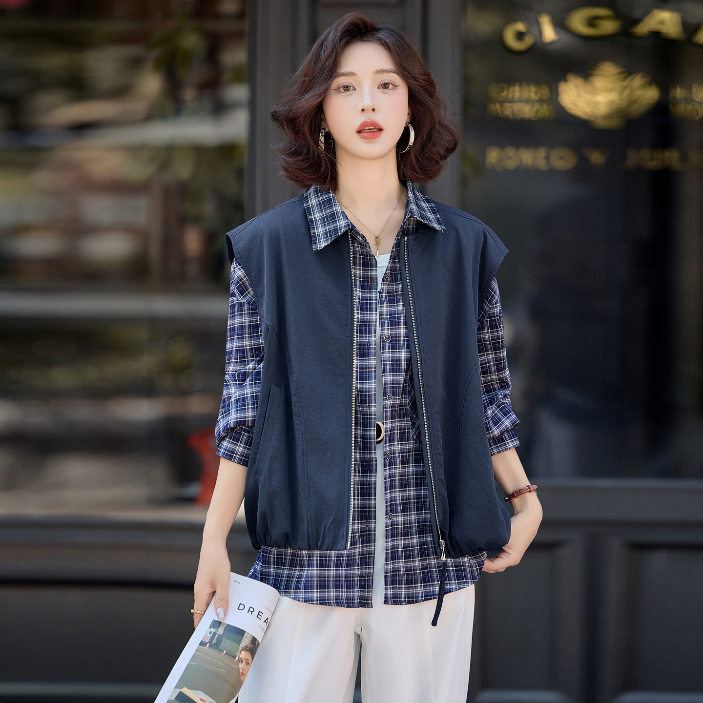 粗针v领开衫 宽松马夹叠穿毛衣坎肩潮 针织马甲背心女2025秋冬新款